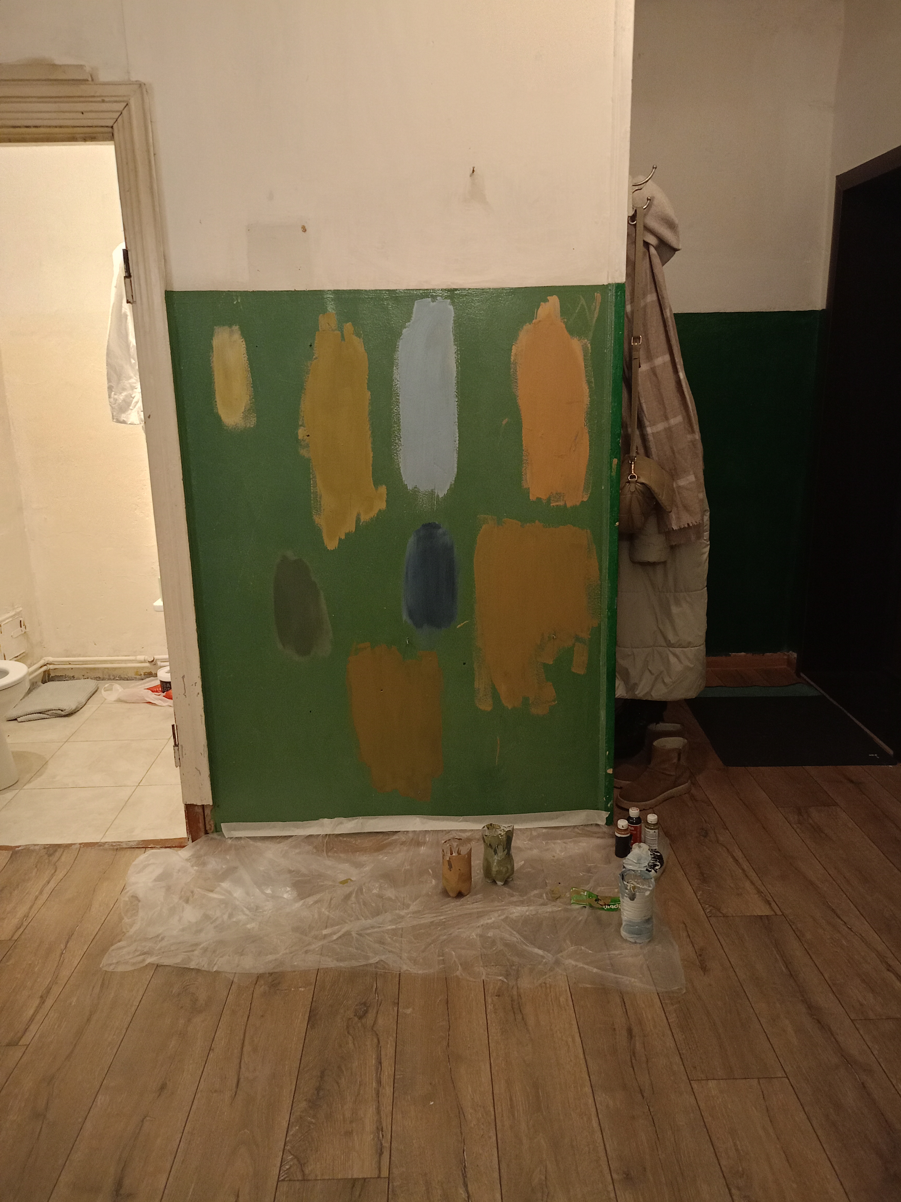 Планировали покрасить стены в прихожей, но руки дошли только до пошкурить (штукатурила местами до этого, в прошлый приезд), обезжирить и загрунтовать дважды.