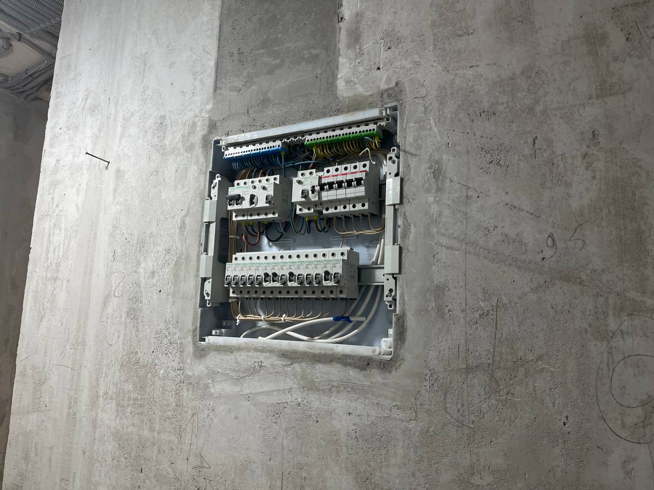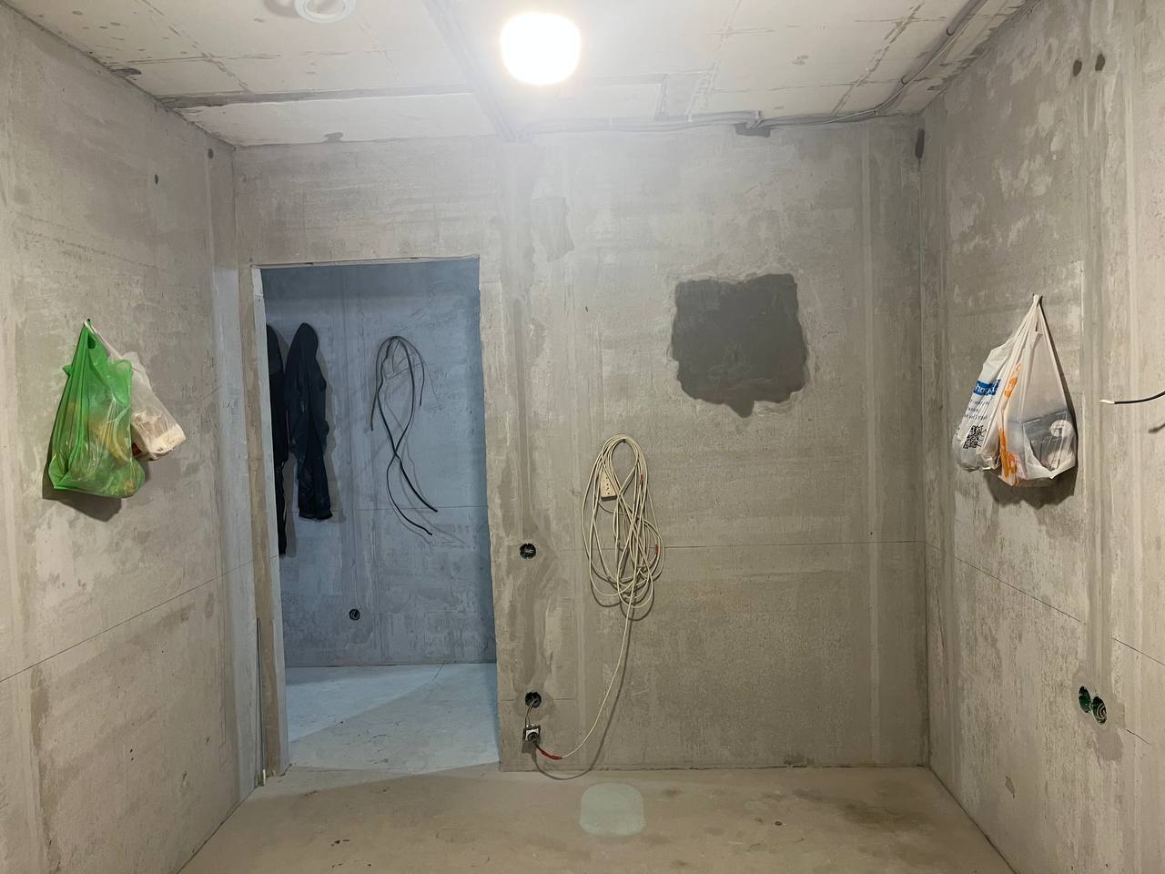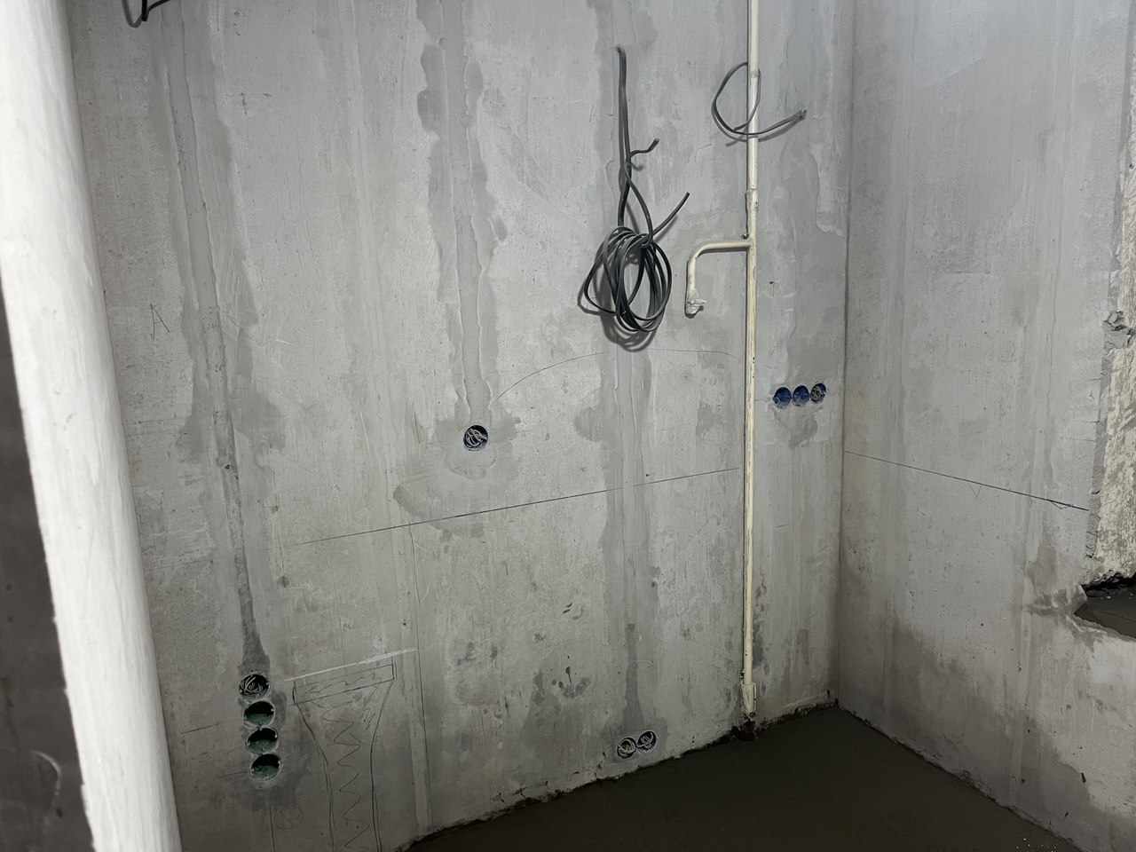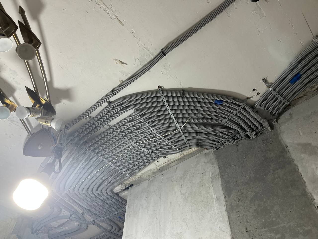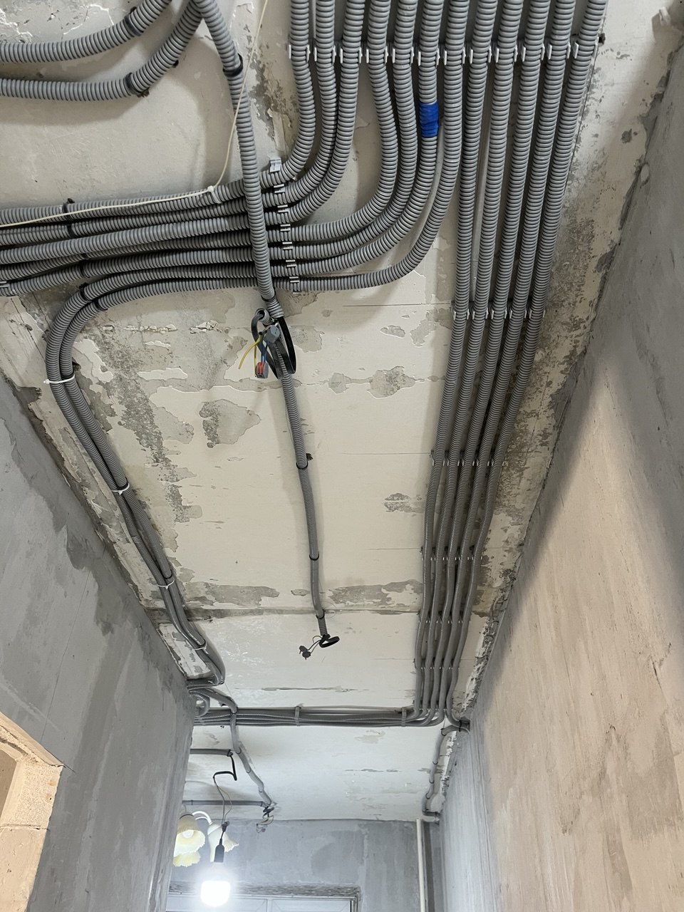 - Всю черновую электрику (через потолок)
