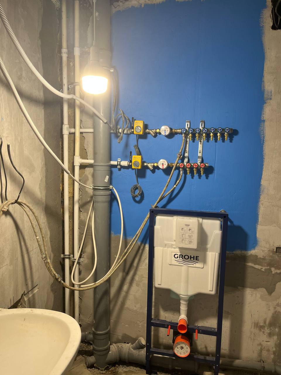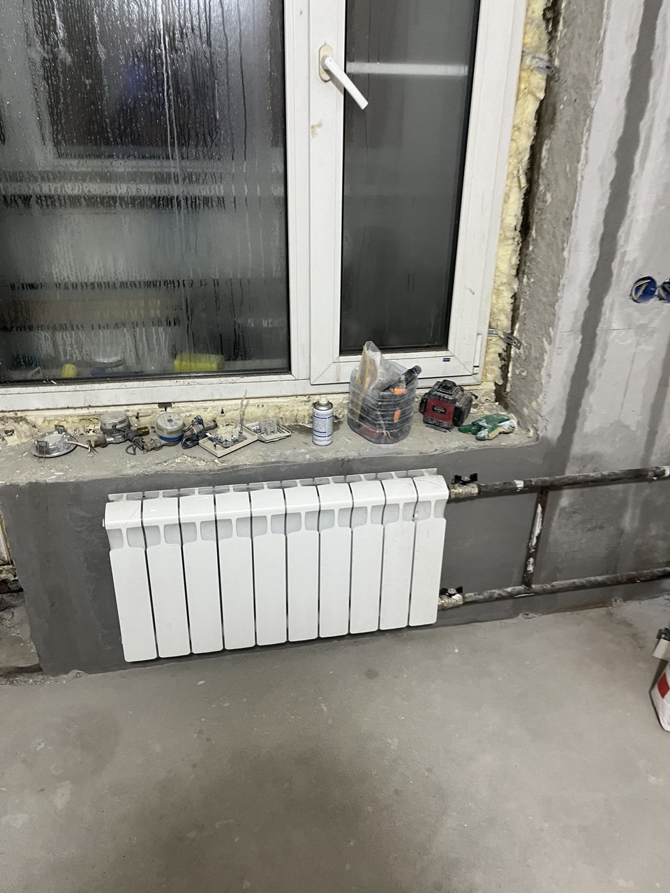 - Инженерные работы по сантехнике (перенесли трубы и счётчики, заменили радиатор — 32000 ₽)