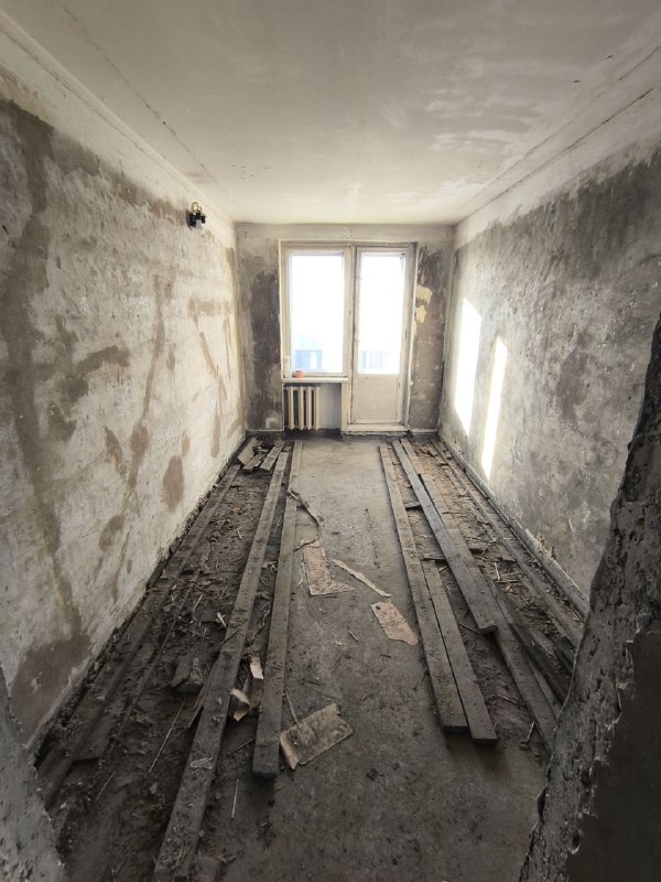 Поскольку одна из проблем, существенно меня тормозивших — вывоз мусора, я решил привлечь к работе этих ребят. Проблема была даже не столько в вывозе мусора, сколько в подготовке к вывозу. Стяжка кухни была мной разобрана на довольно большие куски, которые я уже подустал в одиночку разбивать на мелкие, чтоб запихать в пакеты. Длинные лаги с гвоздями, которые надо хотя бы напилить, чтоб они влезли в лифт. Разобранные шкафы, которые никто и даром не забрал. Не то чтобы это та работа, которую нельзя сделать самому. Но довольно долгая и пыльная. А я, к слову, езжу заниматься ремонтом через весь город в свободное от работы время.