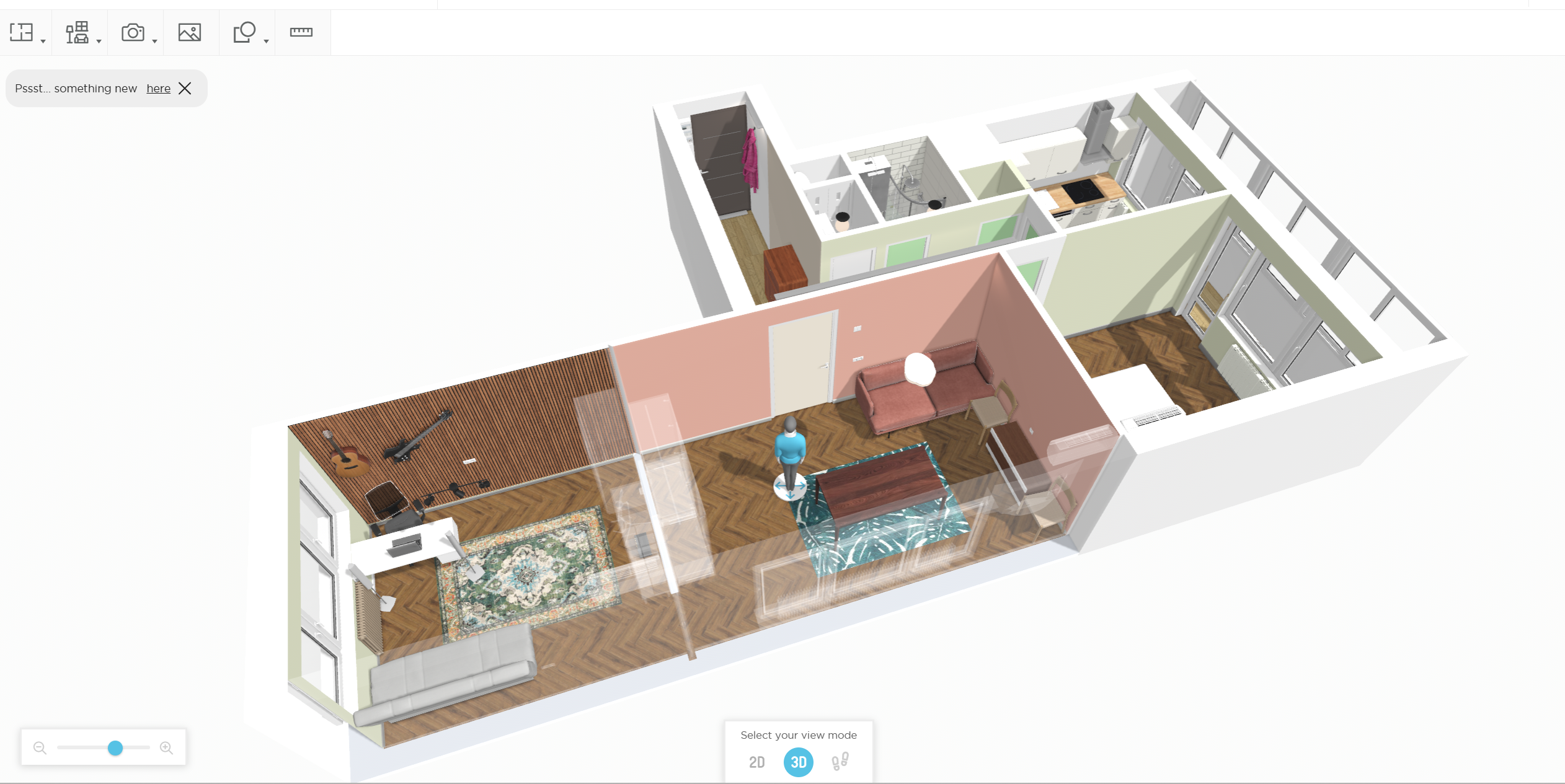 Что помогло в поиске интерьерных решений больше всего: Смоделировал целиком квартиру в home.by.me. Это бесплатный сервис, но сейчас вроде без впн не открывается. Сначала я в нём по размерам строю квартиру и размещаю что у нас есть сейчас. А потом делаю копию, в которой мы эксперементируем с предметами интерьера и цветовыми решениями.