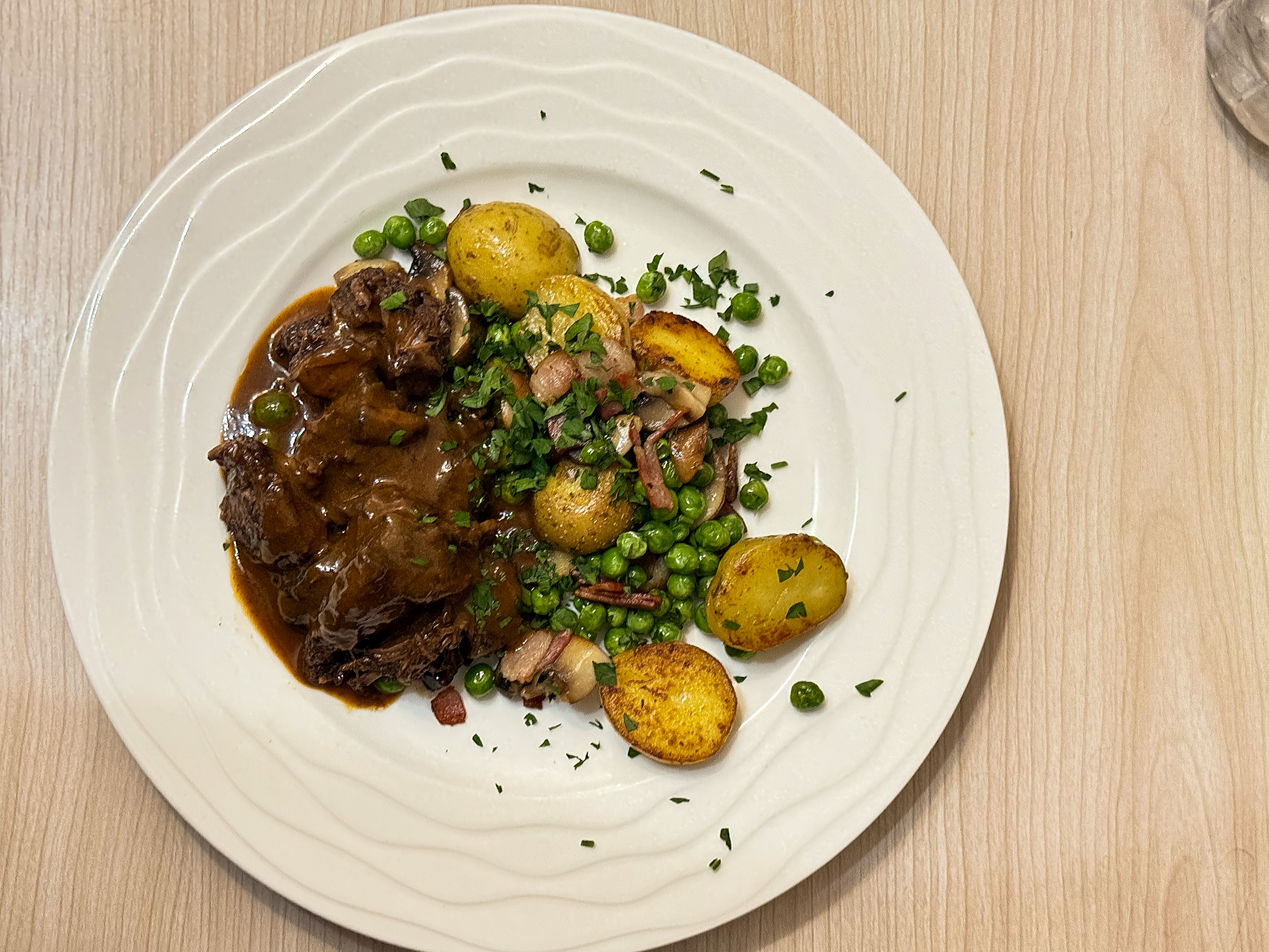 Так как мясо по-бургнудски, то предполагается, что и вино будет использовано бургундское. Но в РФ покупать для готовки такое вино настоящее кощунство, поэтому в качестве альтернативы предложу купить не слишком выдержанный российский или чилийский Каберне Совиньон до 1000 ₽.