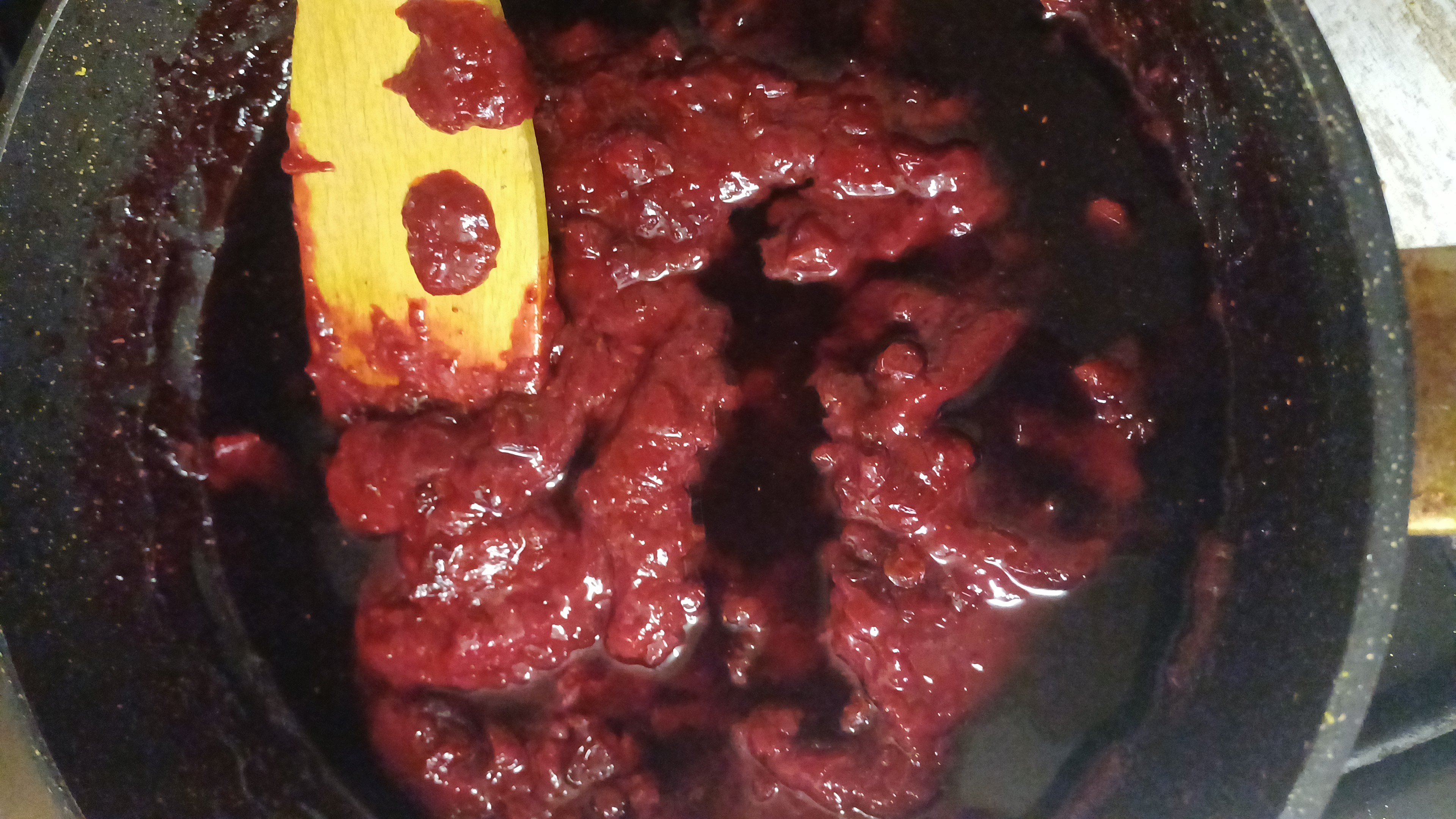 - Добавляю бруснику. Она шипит, трещит, протестует — но это нормально. Тушим минут 15, пока ягоды не станут мягкими, а аромат — плотным, как тёплый плед.