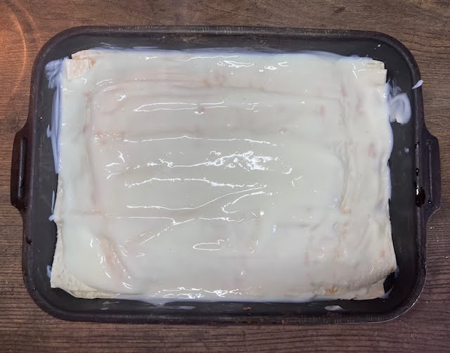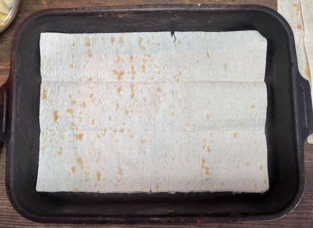3 шаг: при необходимости нарезать лаваш на отрезки повторяющие форму имеющиеся емкости (контейнера).
