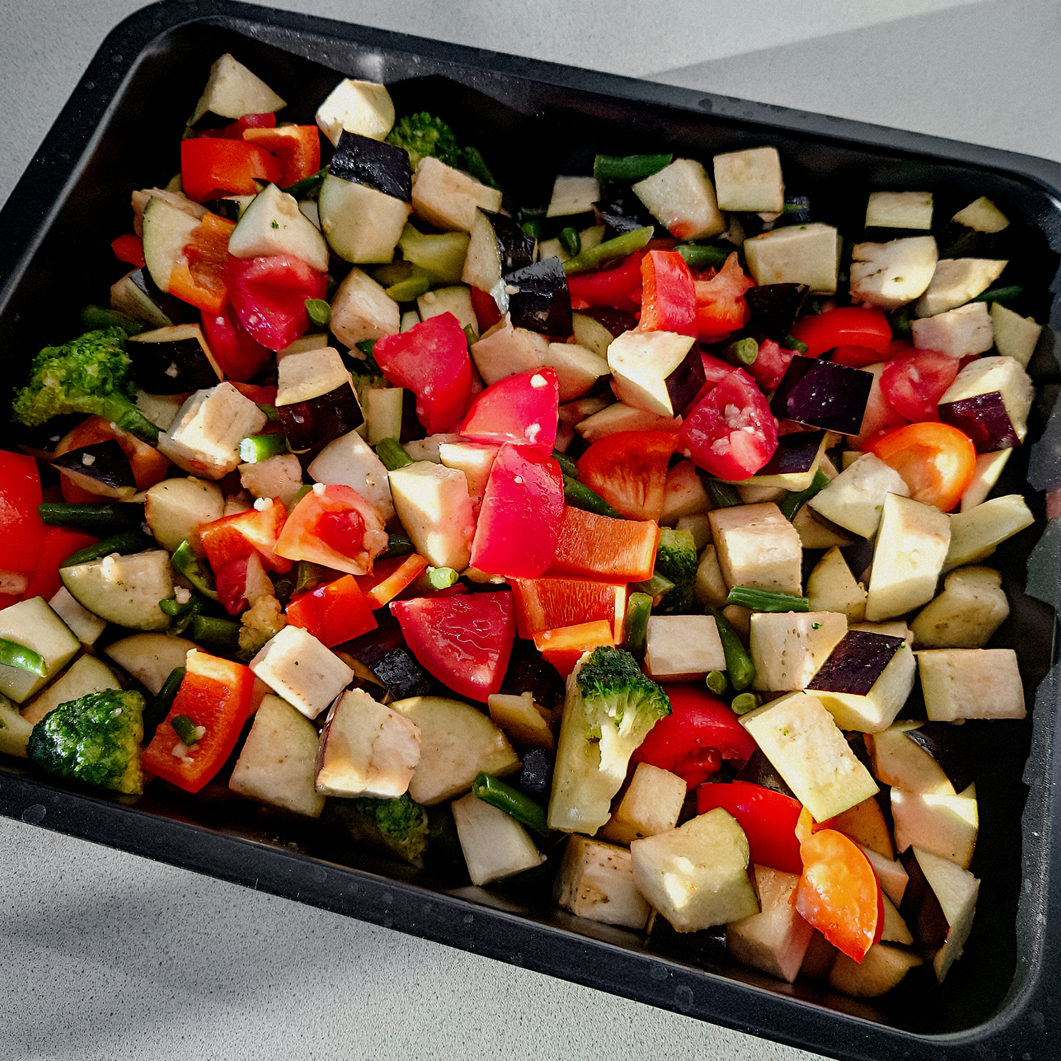 Овощи можно брать любые, но для меня такой состав идеален. Брокколи я не особо люблю, но здесь она почти не чувствуется, потому что пропитывается соком других овощей. Иногда заменяю ее и стручковую фасоль на кабачок — оба варианта у нас в семье идут на равных.
