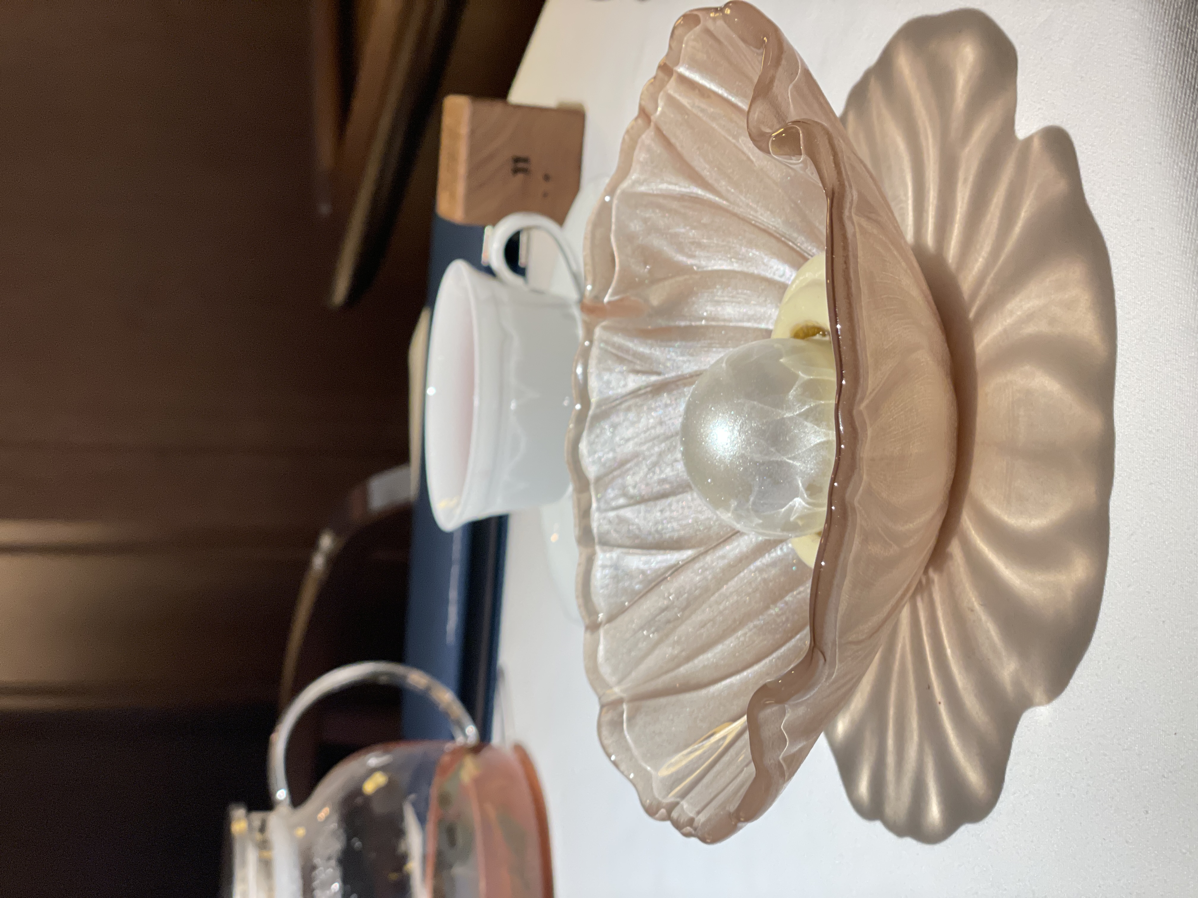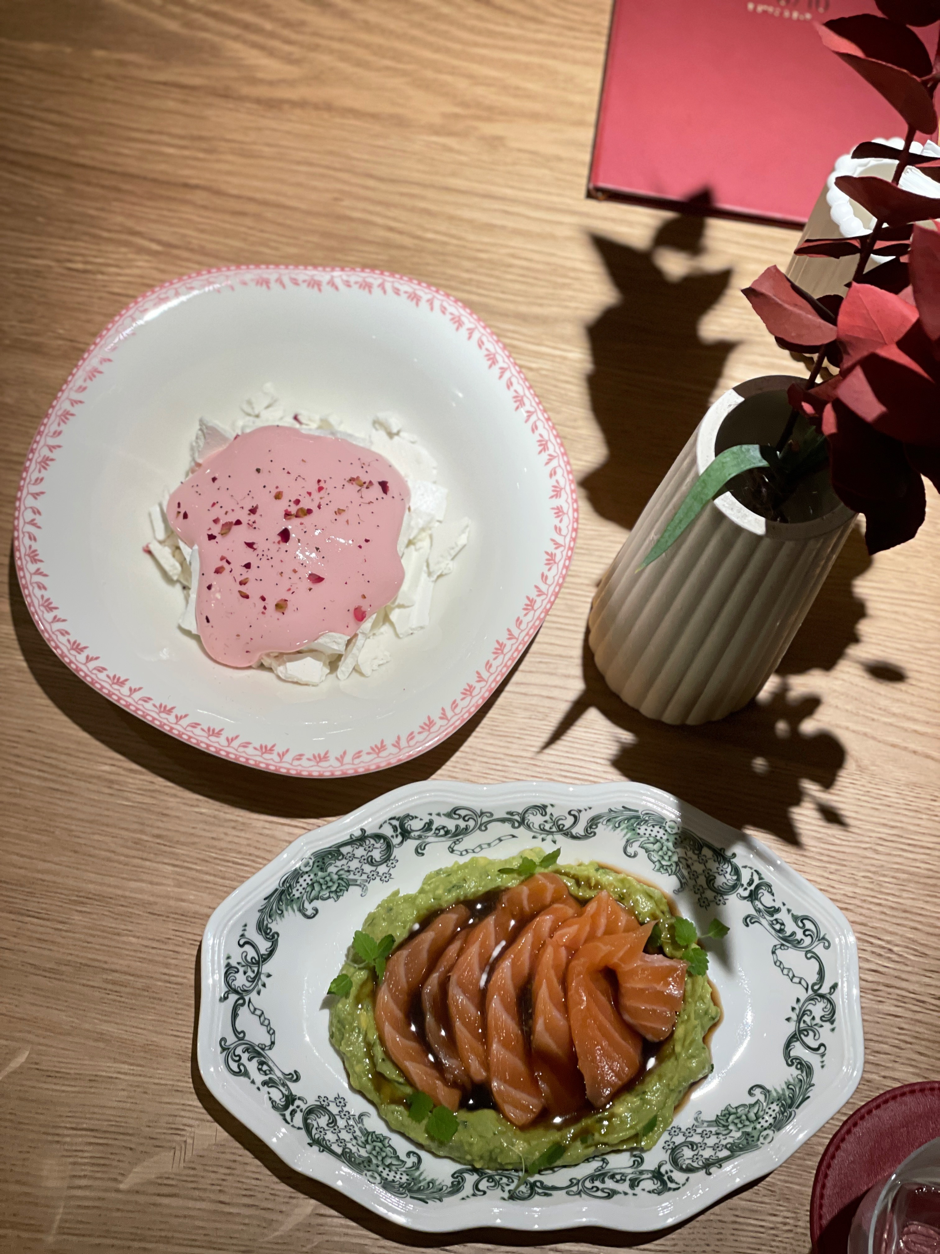 На второй день я заглянула в ресторан снова, чтобы попробовать еловый раф и десерт-жемчужину. Радости моей не было предела. Как же эстетично десерт сиял и переливался в тарелке-цветке.