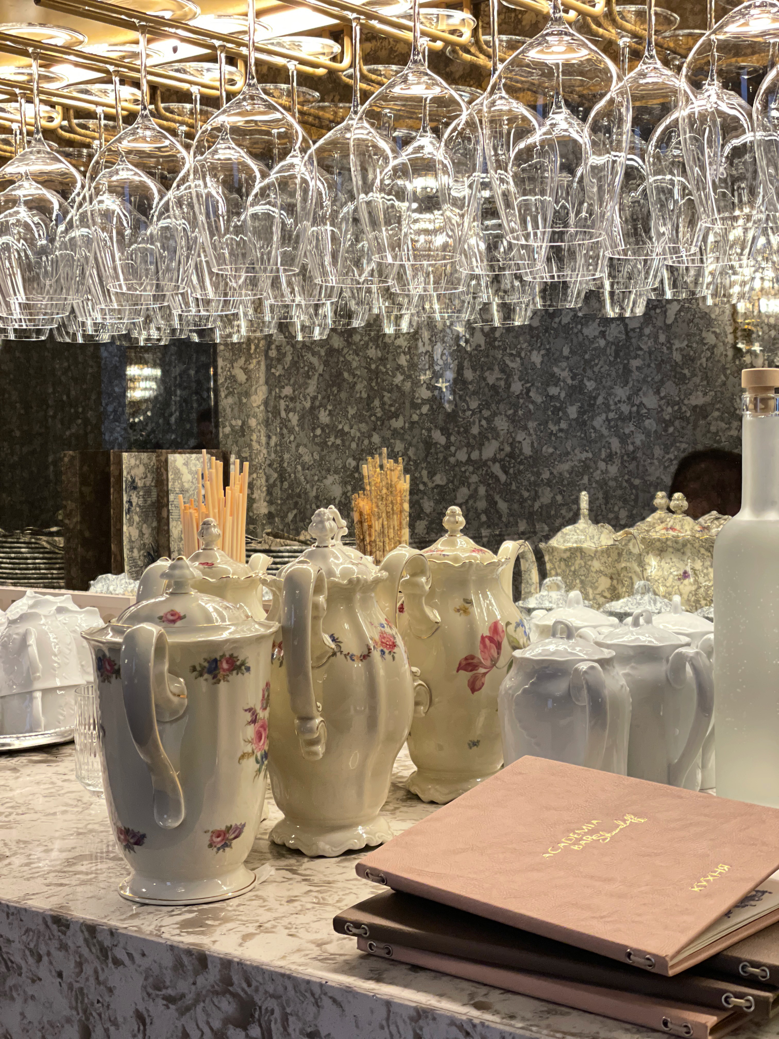 Кстати, в ACADEMIA BAR SHUVALOFF гостям предлагают комплимент от шефа, он на фото. Вот так и получается: съела комплимент, потом основное блюдо, а на десерт — финик) Радушно и щедро кормят гостей. Видели бы вы посуду (покажу на фото)! Она царская. Влюбилась в бокалы ручной работы «Кувшинка» на изогнутой длинной ножке с матовым стеклом. Любоваться и любоваться.