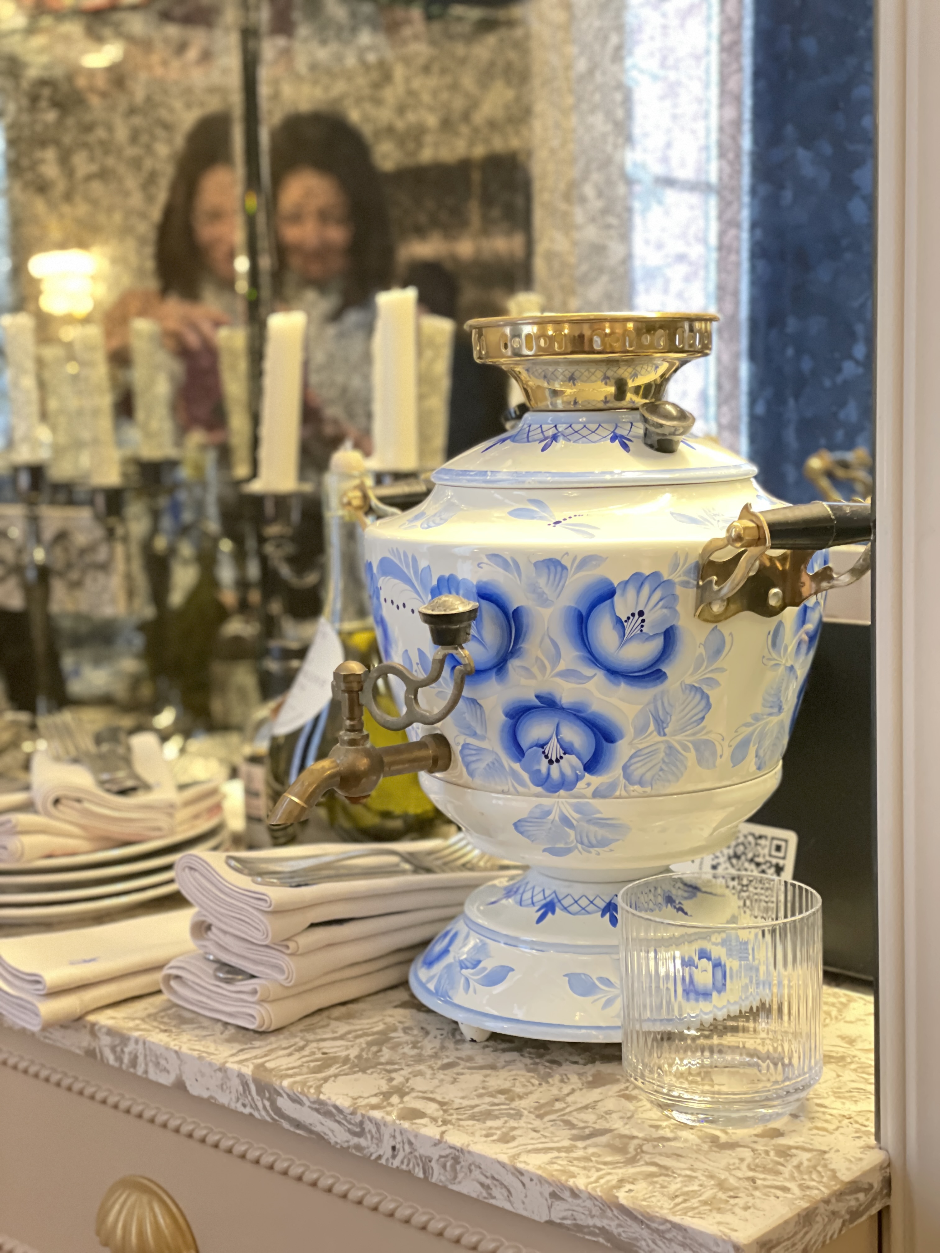 Нам всё очень понравилось. Пока ждали обед, прогулялись по ресторану: увидели в трех залах шикарные картины Агаты Белой. Невероятной красоты люстру и бра. Ощущение, что многое из посуды антикварное, потому что на следующий день в Эрмитаже было много подобного))) хотя это могут быть мои гедонистичные фантазии.