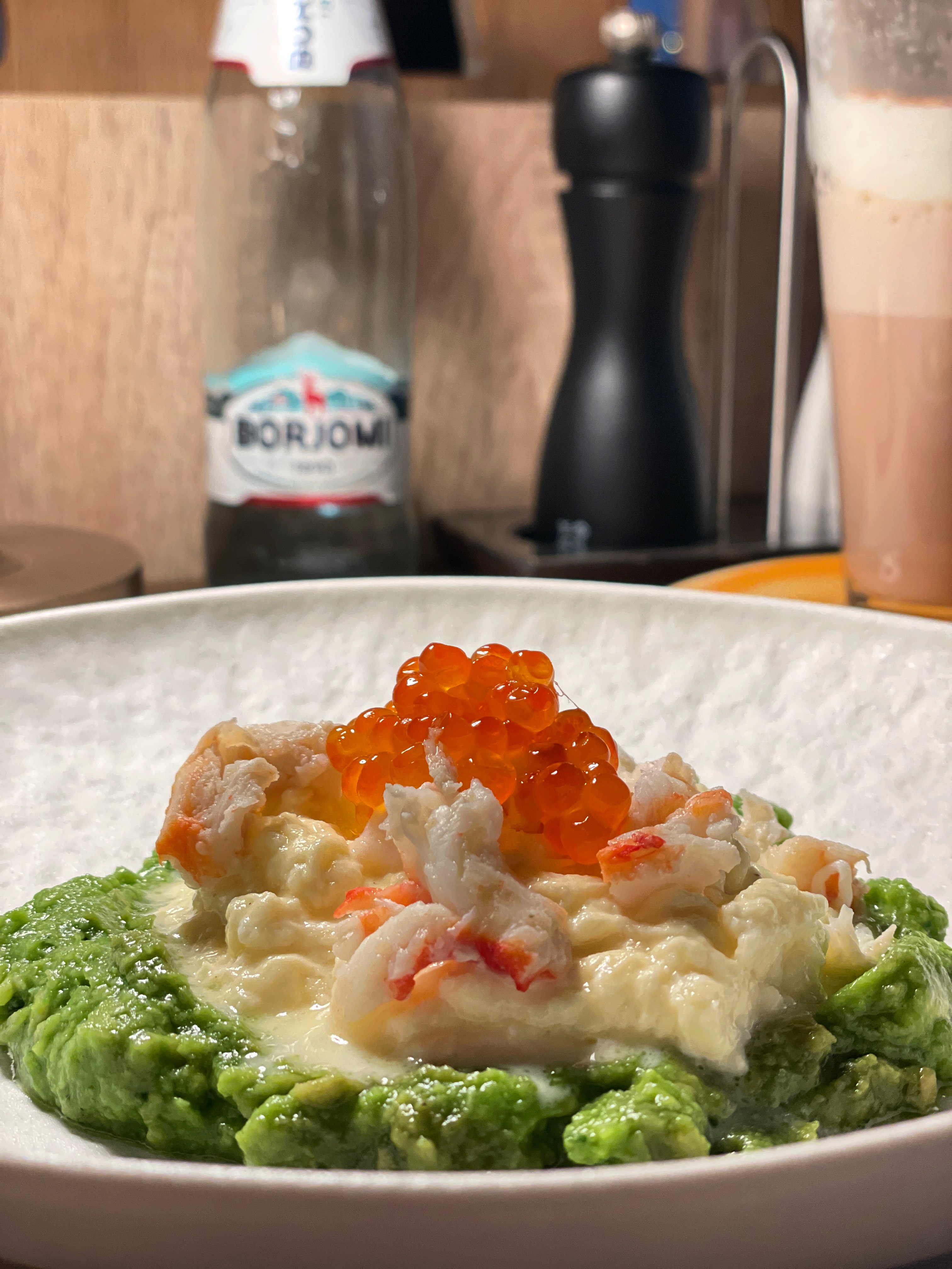 Как же мне было вкусно. Тост со свеклой и рикоттой, украшенный перепелиными яичками я съела просто в миг, потому что он был тоньчайшим и нежнейшим. А вот когда мне подали скрэмбл на подушке из авокадо с щедрой порцией вкуснейшего краба и икрой, тут мое настроение улучшилось, потому что выглядело блюдо очень привлекательно. На вкус оказалось еще прекраснее. Просто нежность.