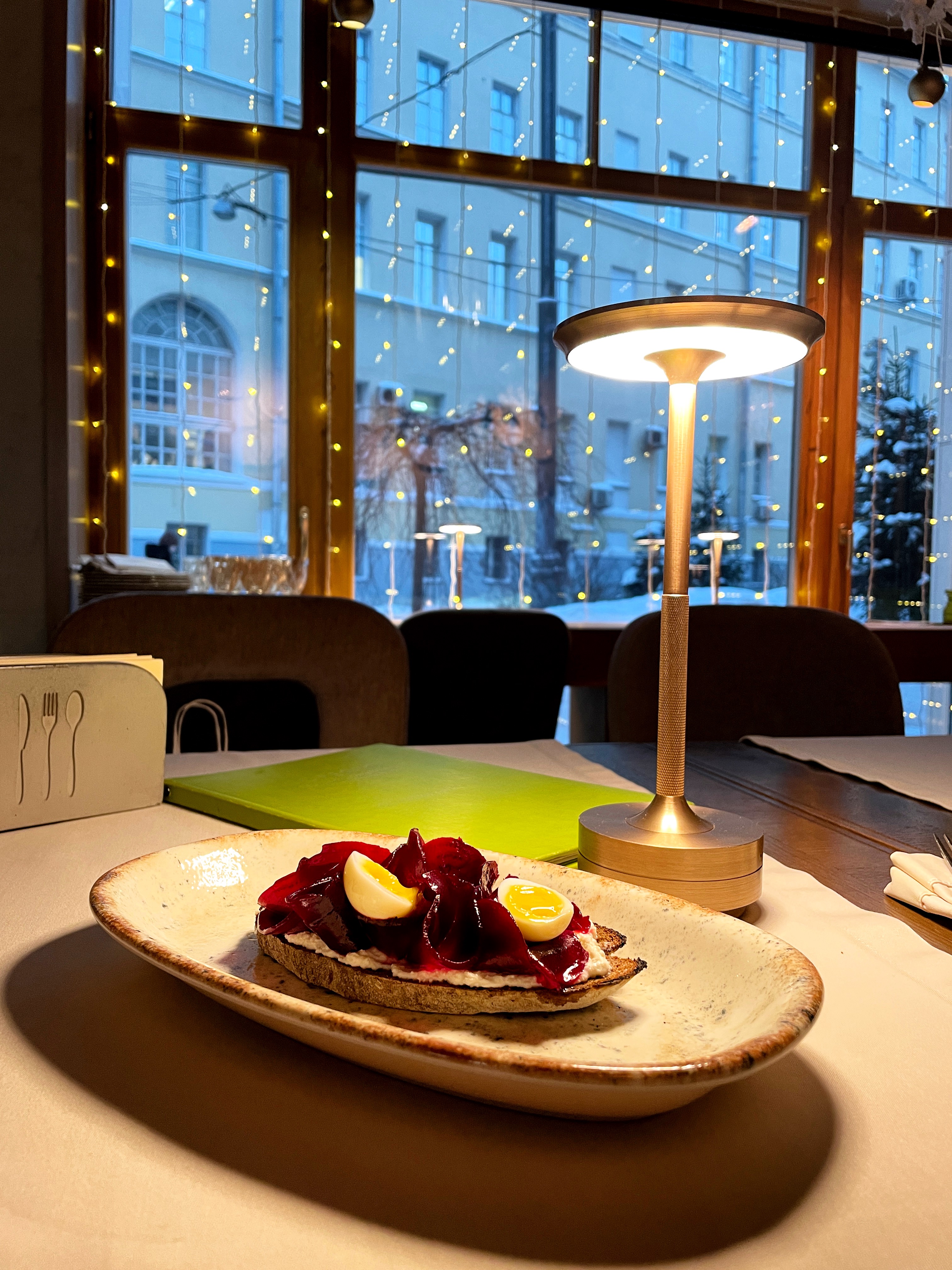 В этот ресторан я пришла в пятницу после работы с почти трясущимися от голода руками, потому что задержалась в лаборатории. С голоду заказала: тост со свеклой (да, я очень люблю свеклу), омлет с авокадо и крабом, а на десерт — рисовую кашу на кокосовом молоке с мандарином. Кстати!!! Тут еще был нереальный какао с тремя красивыми слоями в стеклянном бокале с кислинкой сверху, которую я не смогла распознать.