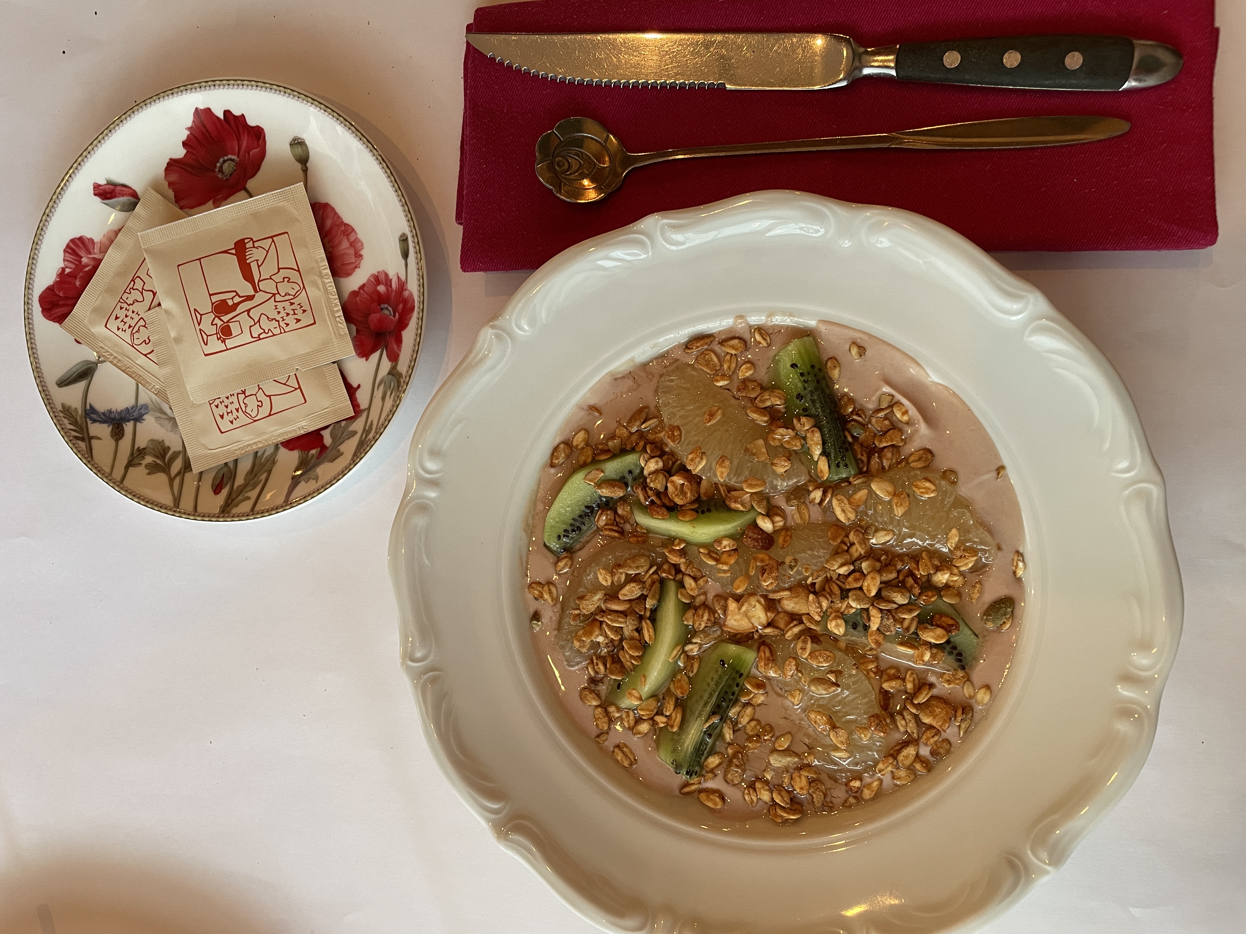 На десерт я с удовольствием съела авторское блюдо: йогурт с Nutellа со свити и киви. Чем-то напомнил мне вкусы детства. Легкий и приятный десерт.