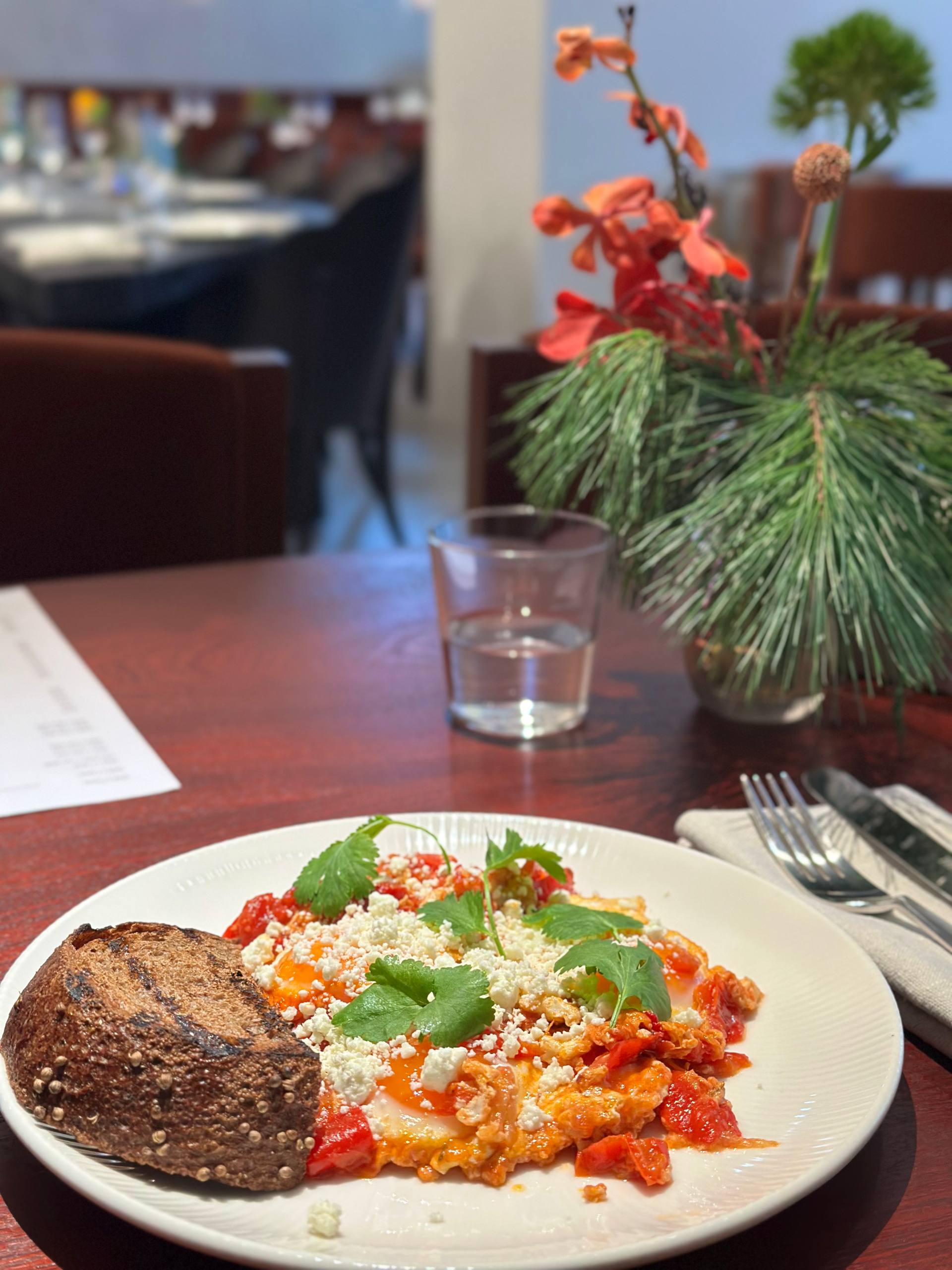 В этом ресторане я была впервые, он расположился на двух этажах. Второй этаж встречает небольшой белоснежной оранжерей, это нужно увидеть своими глазами, потому что мне сложно описать этот красивый и впечатляющий интерьер. Заказала пшенную кашу с фрикадельками из креветок, пармезаном и яйцом пашот. Знали бы вы, какие сочные были фрикадельки. До сих пор помню этот вкус. Невероятно оригинально, сытно. Это поистине авторский завтрак. Рекомендую для тех, кто ценит каши и яркость вкусов.