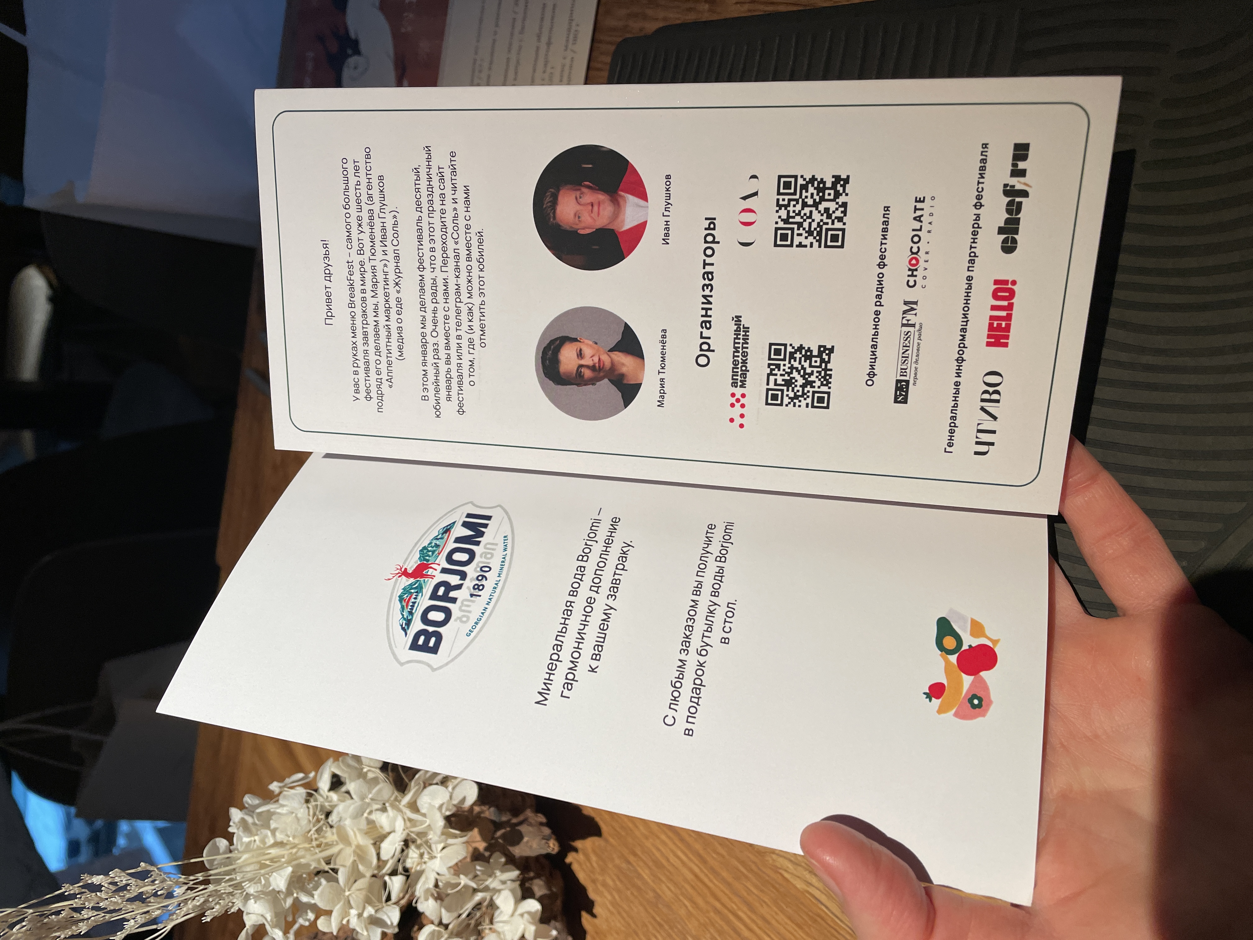 А еще к любому заказу блюд из фестивального меню, в стол комплиментарно шла бутылочка Боржоми) приятно. Полезно.