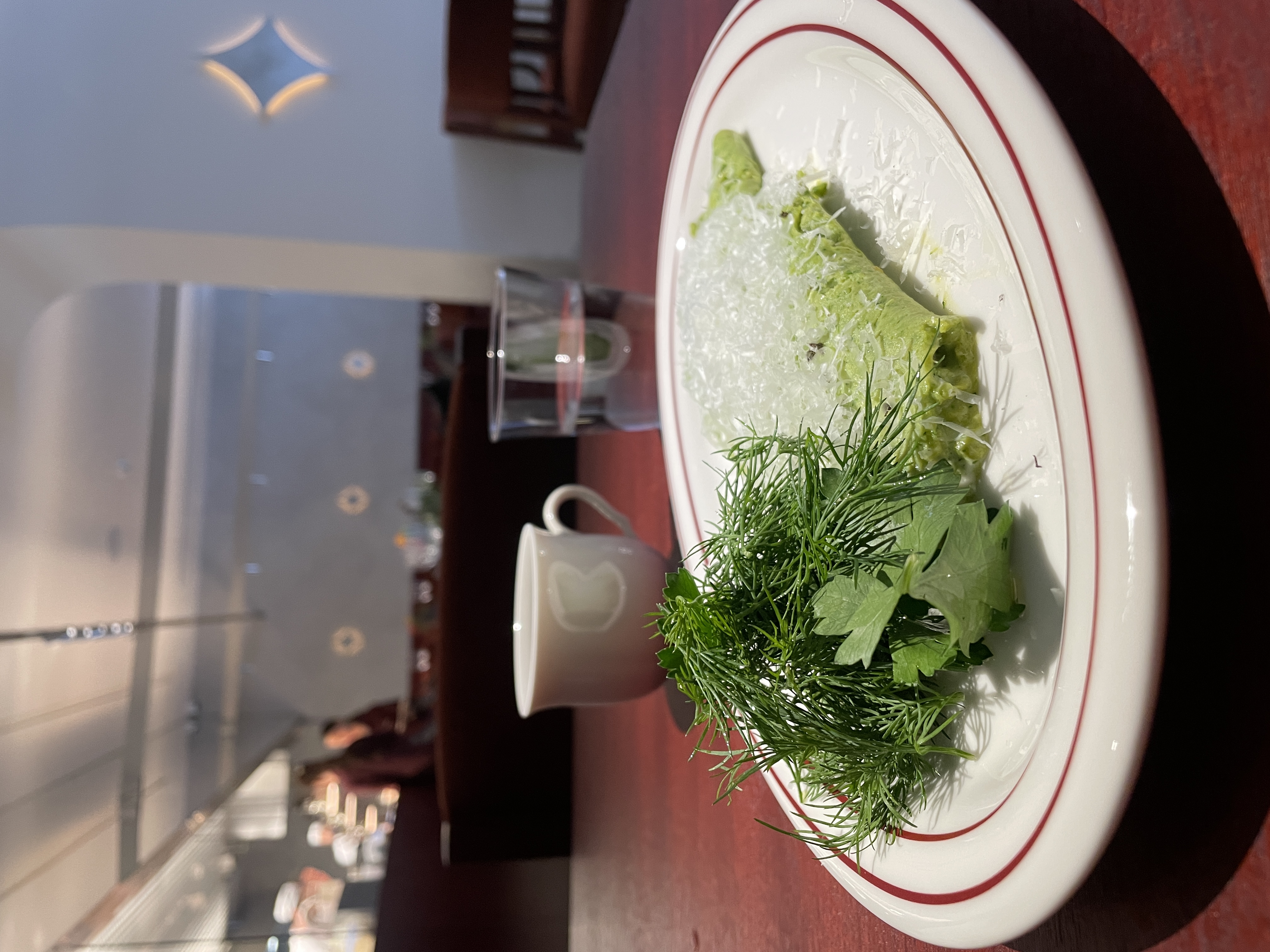 Я заказала зеленый омлет из брокколи с пармезаном и сыром внутри — просто нежная нежность. Еще поняла, что у меня видимо какая-то особенная любовь к еде зеленого цвета) посмотрите на фото, как это чудесно выглядит. Блюдо очень лёгкое, поэтому мы еще с удовольствием навернули, простите за жаргон, по булочке с кардамоном, которая подается с удивительным земляничным вареньем и соусом, не расскажу каким)))