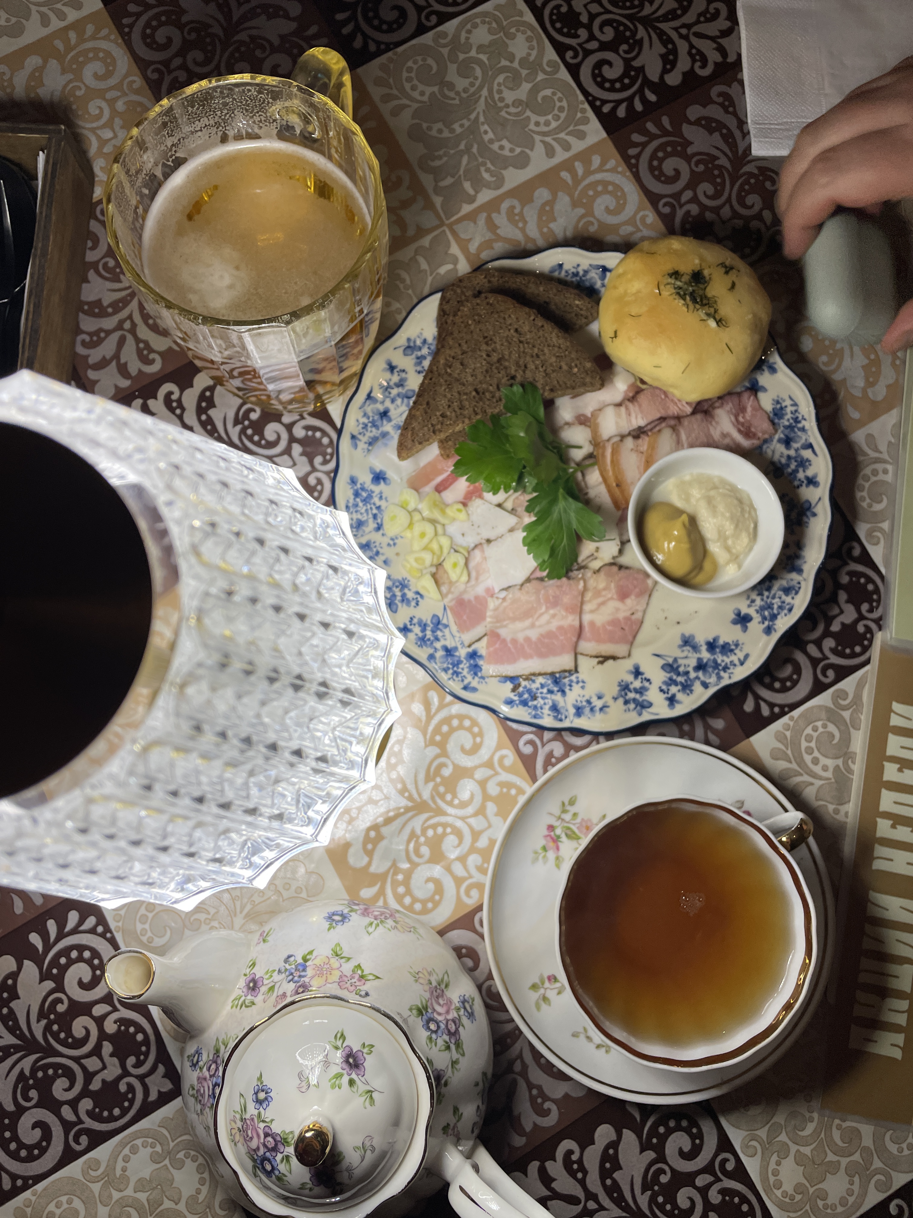 Про этот ресторан уже рассказывала, здесь живет кот и ощущение, словно к бабушке в гости приехала. Здесь подаётся ассорти сала с бородинским хлебом свеженьким и с горчицей. Это просто вау, как было вкусно)) нежное-нежное, самый домашний вариант, правда фото не сохранилось.