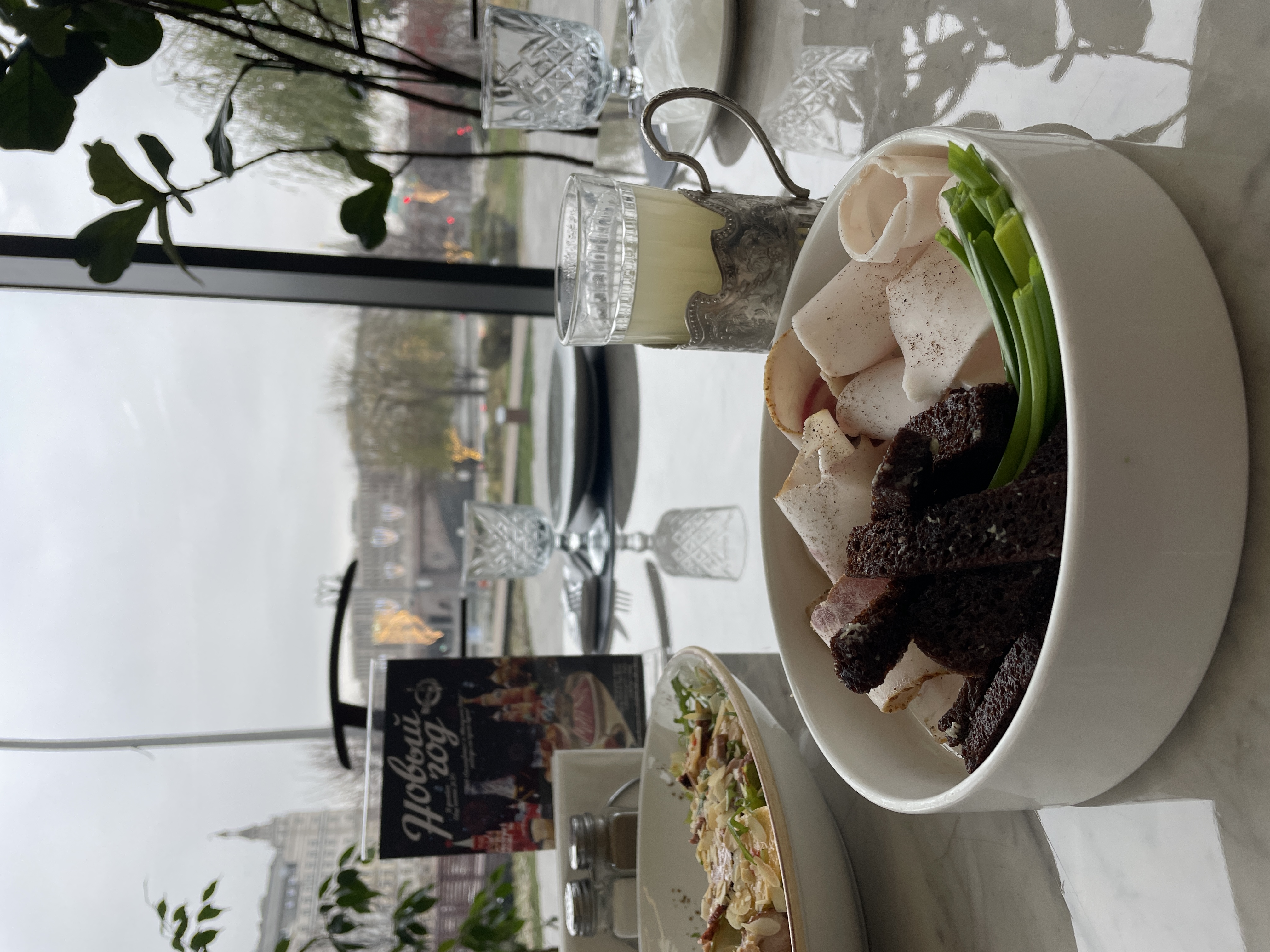 Двухэтажный ресторан на Маяковке, в котором мы ели раков, борщ и конечно сало) Тонко нарезанное с горчицей и несколькими треугольными кусочками черного хлеба.