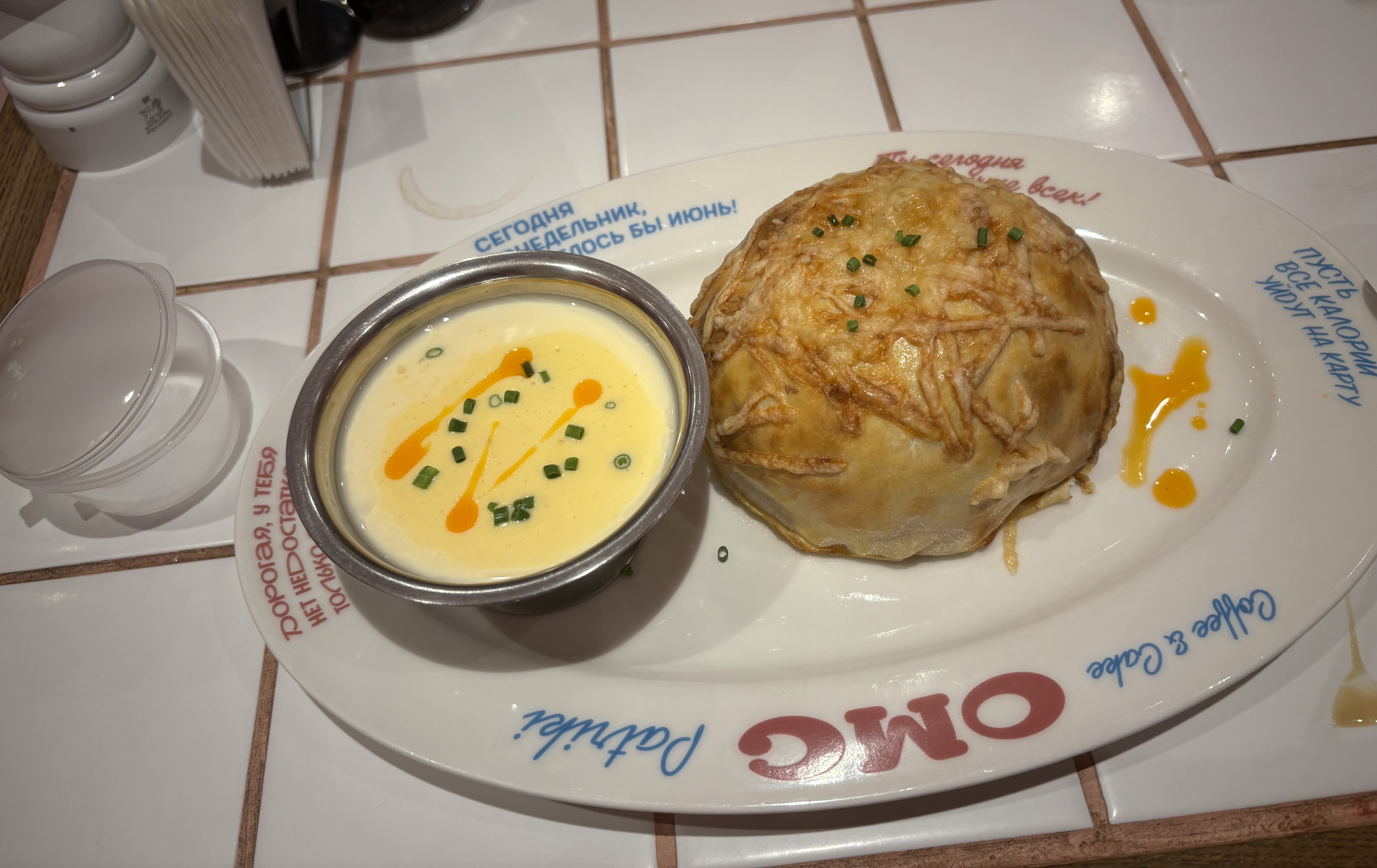 Обслуживание понравилось, официанты милашки, сразу предупредили, что блюдо, которое, я заказала будет готовиться 40 минут и показывали фотографии напитков, когда я спросила есть ли напитки с интересной подачей.