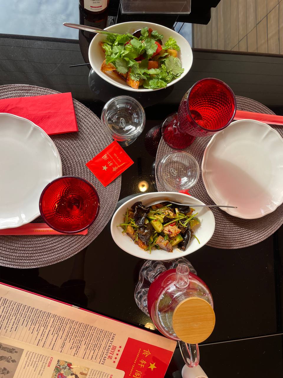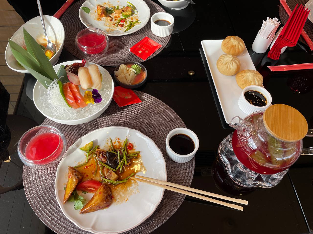 Решила выбрать что-то более понятное: запеченные баклажаны, бао с говядиной и ягненка с зеленым луком. И каждое блюдо вызывало фейерверк впечатлений.