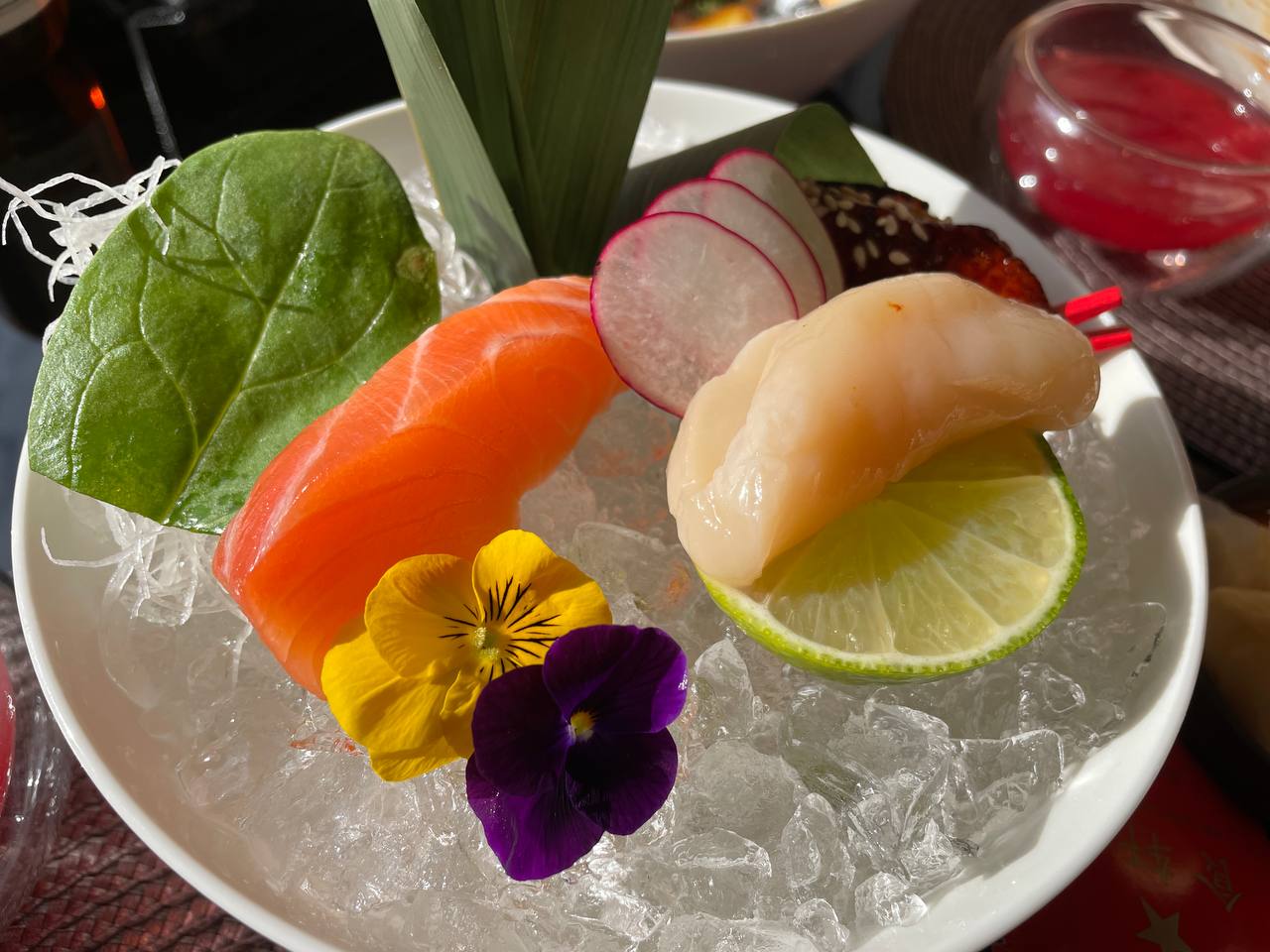 Из рыбных блюд заказали свежайшее сашими, тут наши мнения с братом разошлись, потому что он не привык есть сырую рыбу, ему понравился угорь и лосось, а я была в восторге от нежнейшего гребешка, угря — просто шикарный.