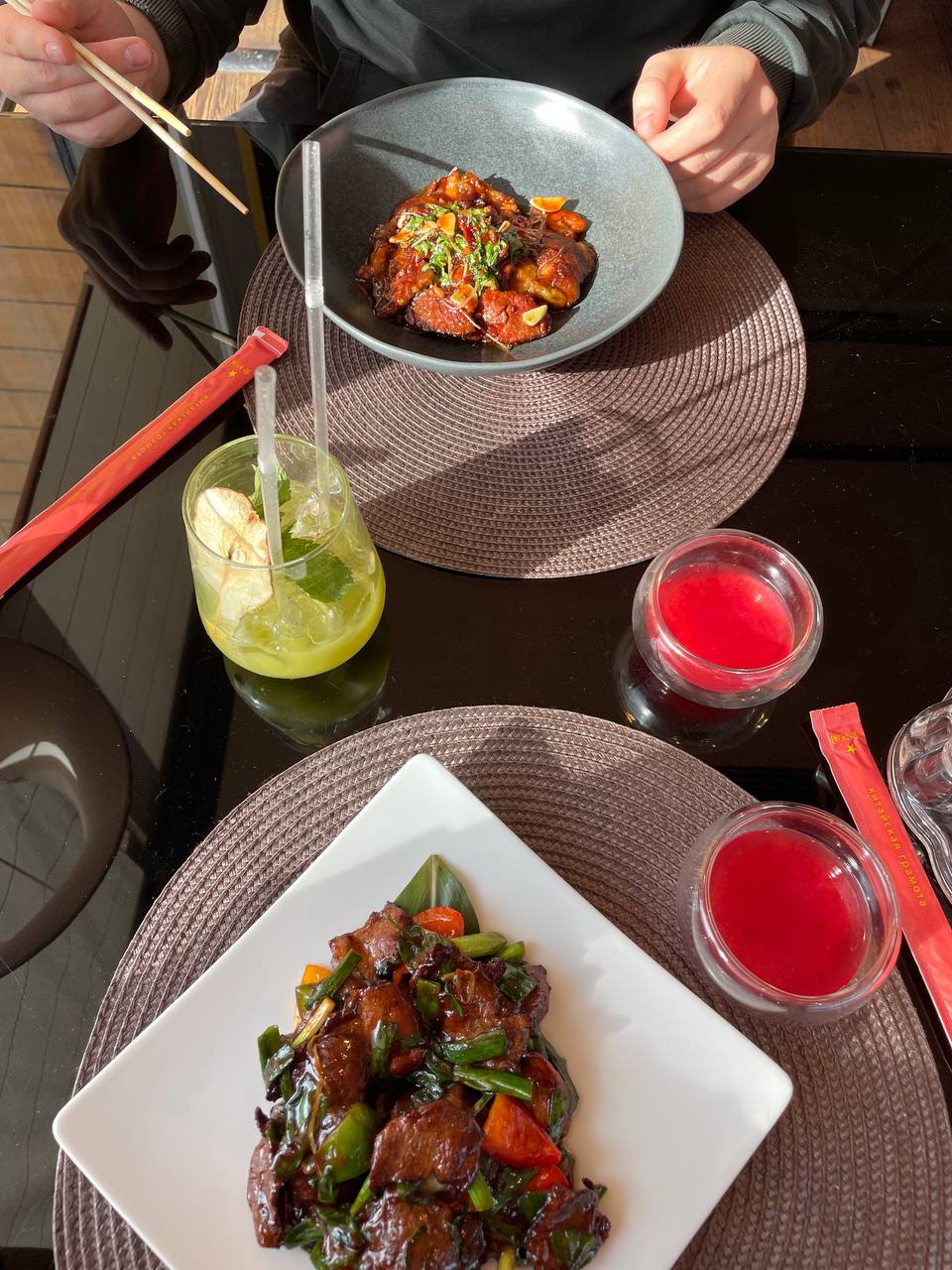 Во-первых, всё просто на просто вкусно, во-вторых, вкусы новые за счет обилия специй, соусов, которые отличаются от европейской кухни, в-третьих, порции горячего словно на двоих рассчитаны. Поэтому я просила брата помогать.
