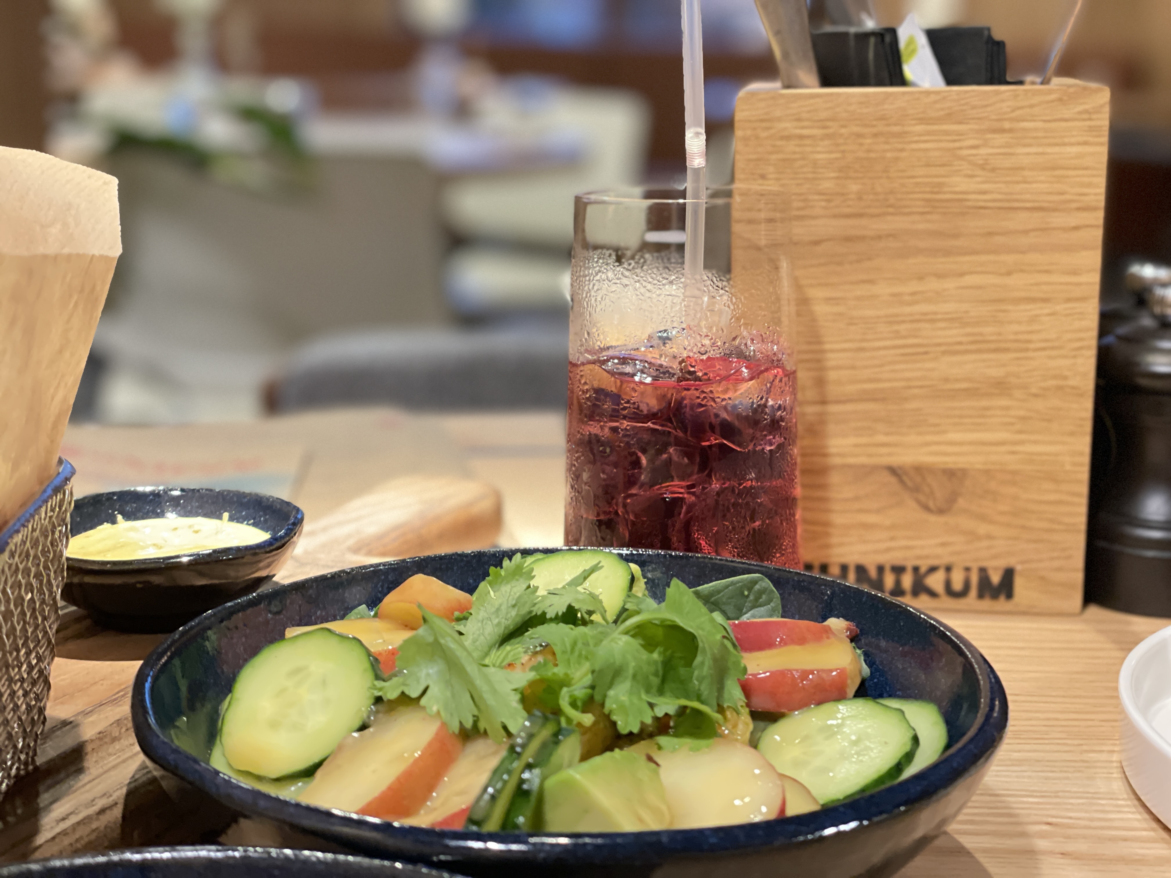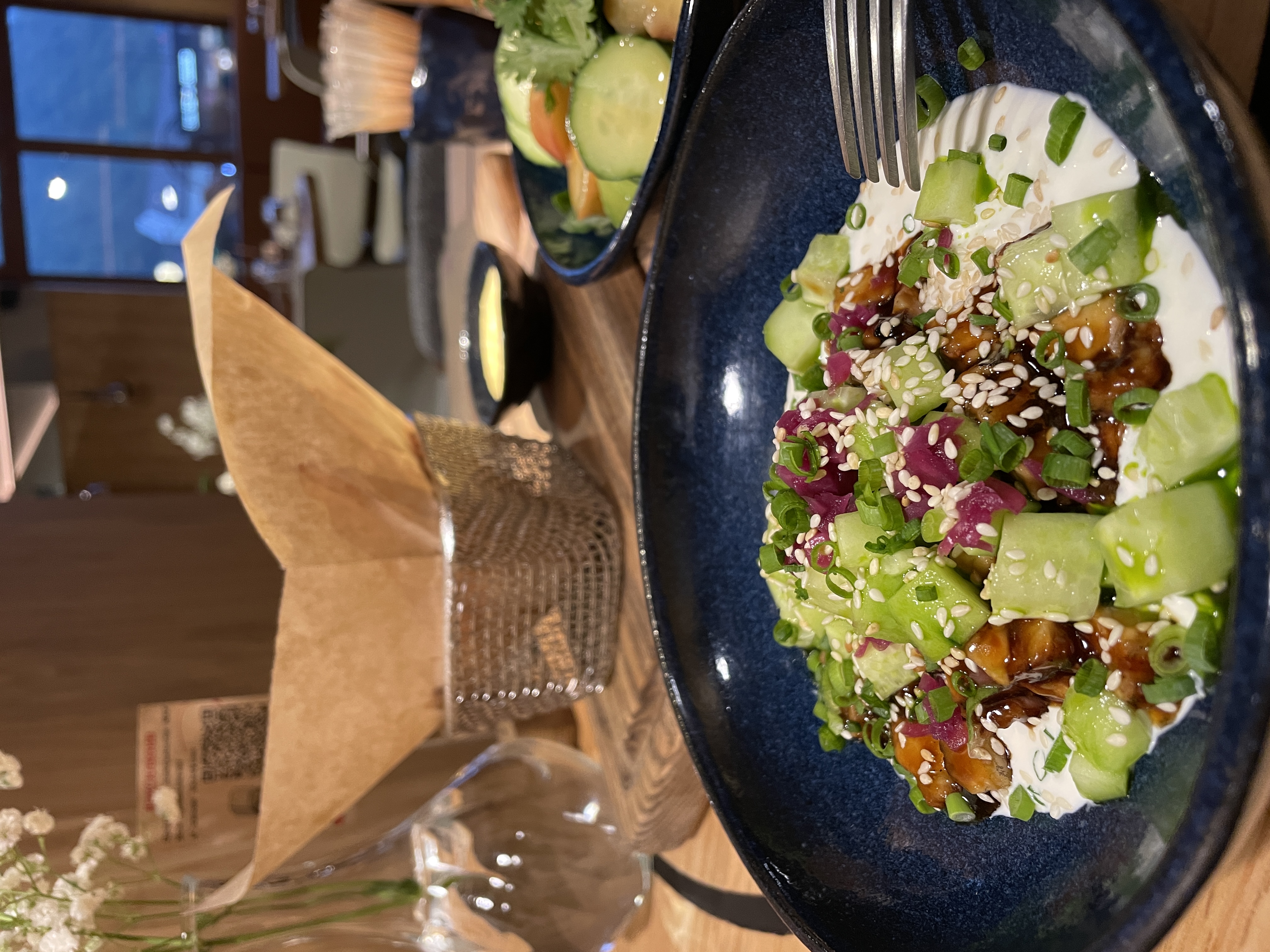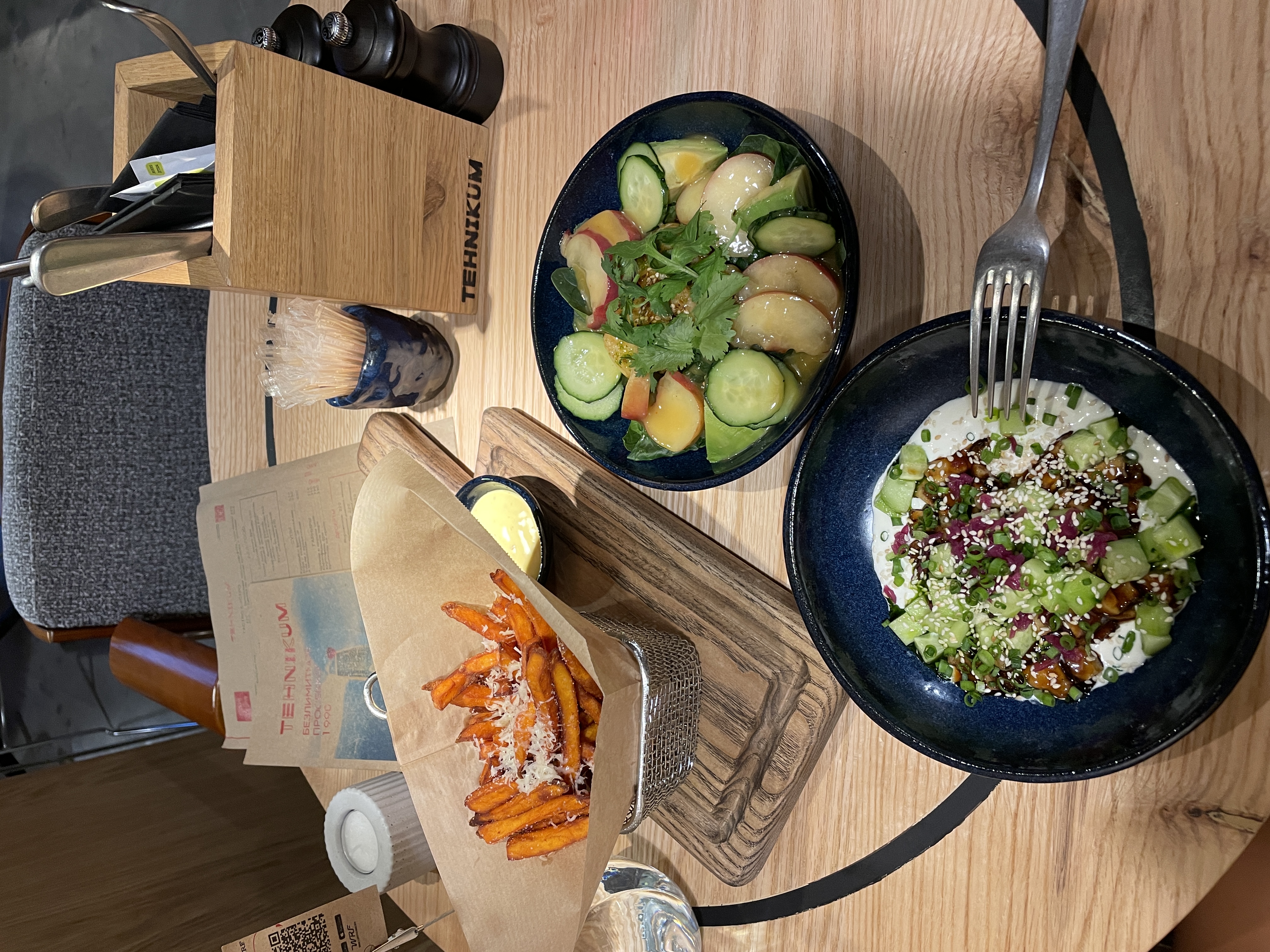 Я заказываю все тоже самое, что ем в Москве) любимый батат фри, салат с авокадо и нектаринами с лавандово-медовой заправкой (обожаю этот вкус и кусочки крупного авокадо), бутерброд с песто и томатами, потому что здесь шикарный хлеб, поке с креветками или индейкой, еще люблю тар-тар с угрем и свежим огурчиком.