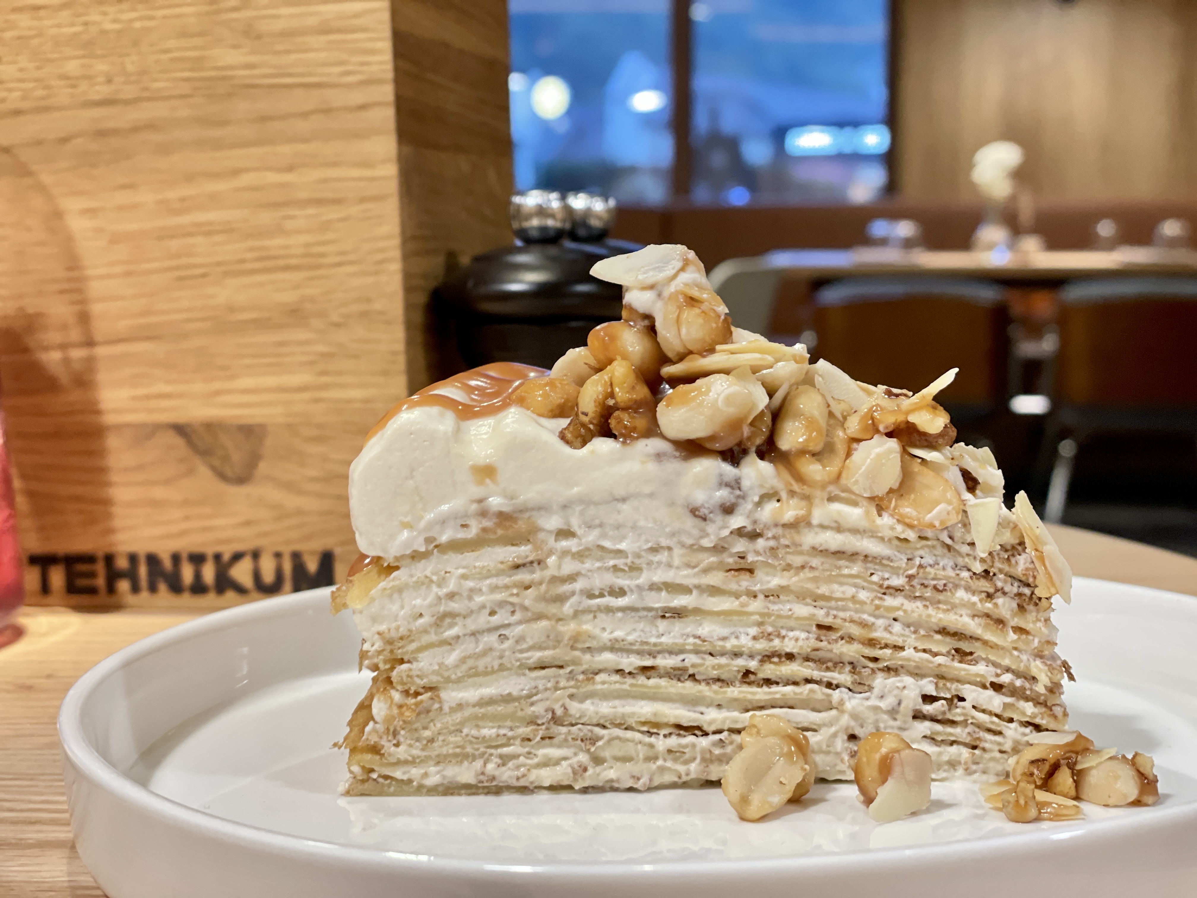 Вчера устояла, а сегодня меня обслуживала Кристина и соблазнила меня на блинный торт с соленой карамелью. Это просто блаженство, а не торт. От нежности я чуть сама не растаяла, а вкус такой словно во рту карамельно-соленый поп-корн взрывается. Оооооочень) надеюсь, что завтра я все-таки дойду до другого ресторана, но эти обеденные скидки в 20% уж очень соблазнительны, как и вся еда)