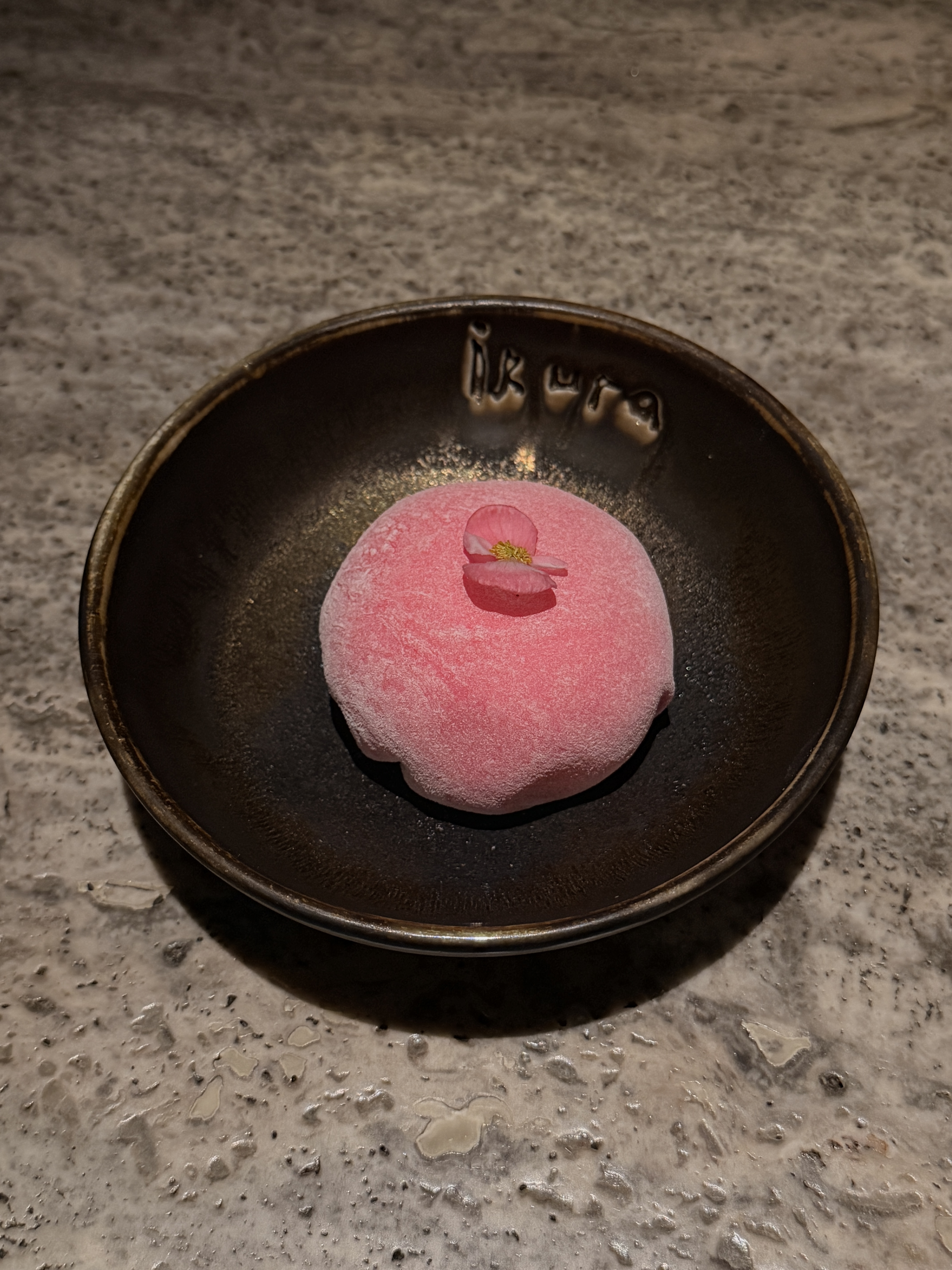 В Ikura я впервые попробовала моти-дайфуко с постным наполнением со вкусом сакуры. Гастрономично и изысканно.