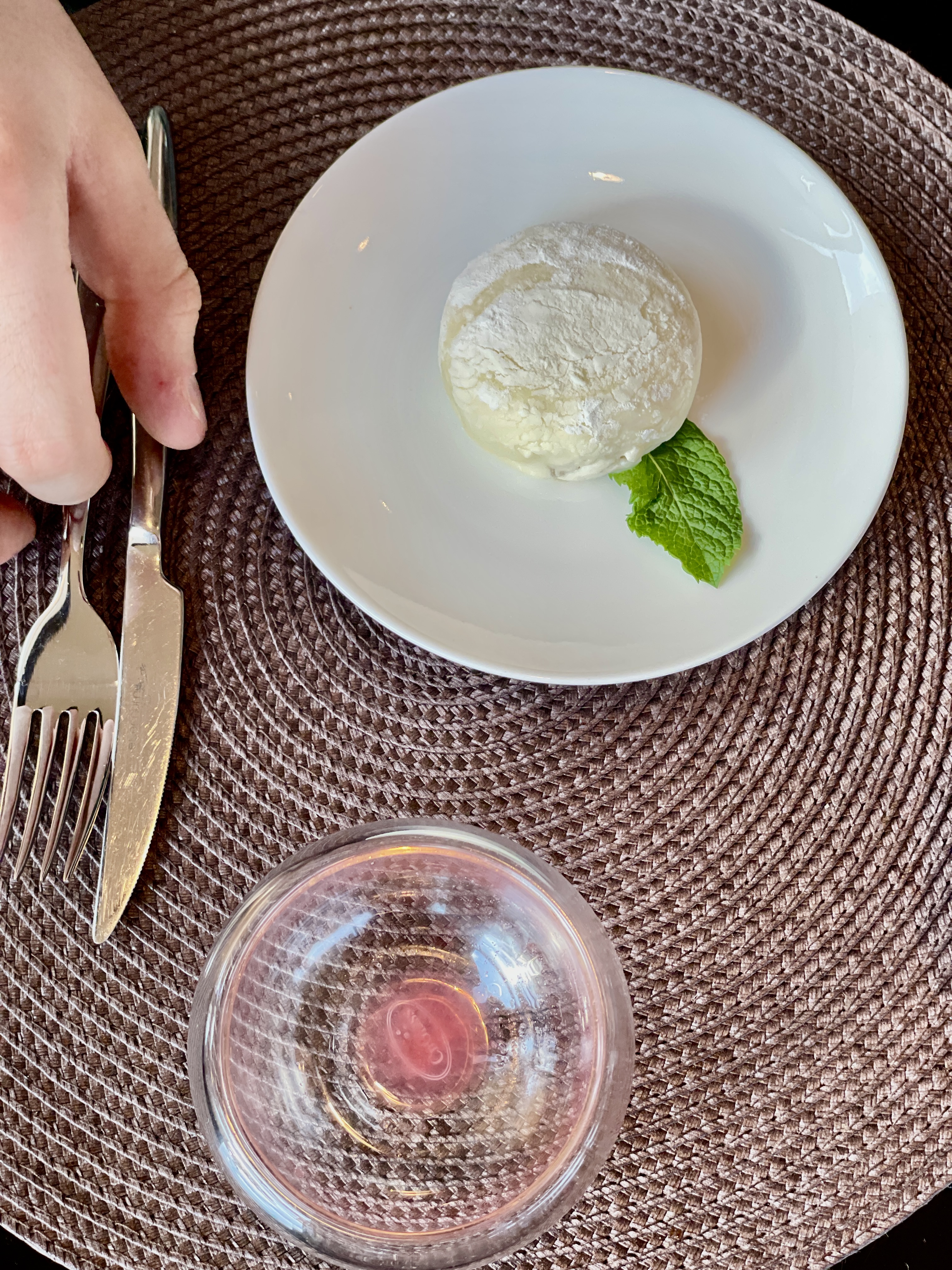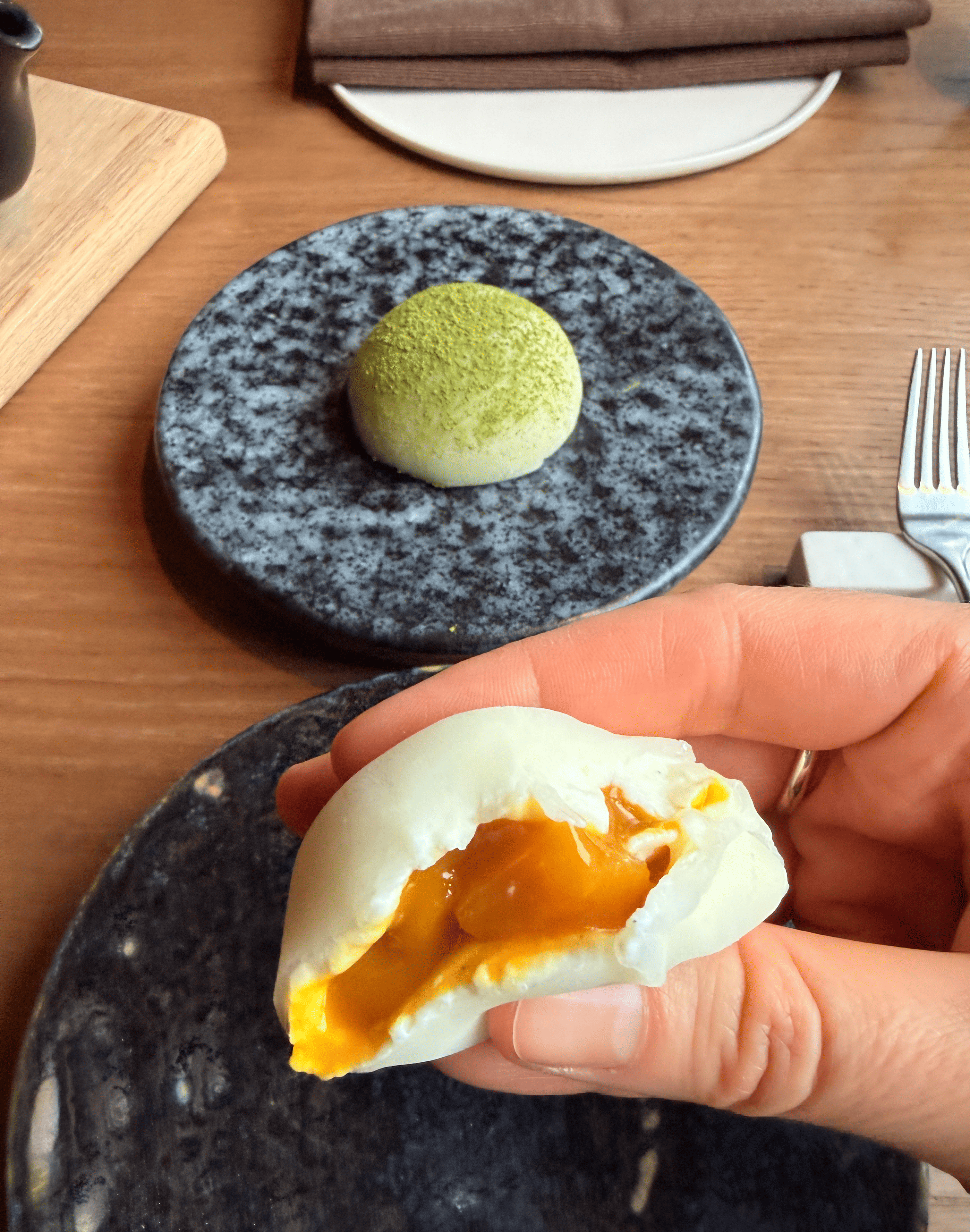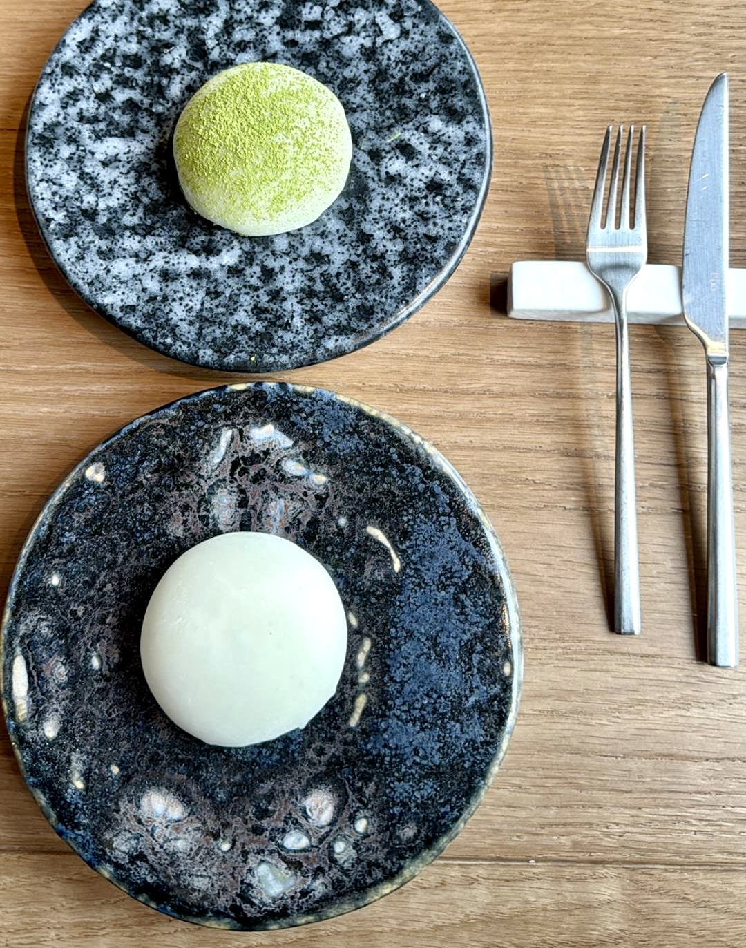 В меню есть два вида моти: йогурт-манго и матча-земляника. Честно говоря, я не удержалась и уточнила у официанта, почему стоимость моти разная. На что он с улыбкой ответил: потому что во втором свежая земляка.