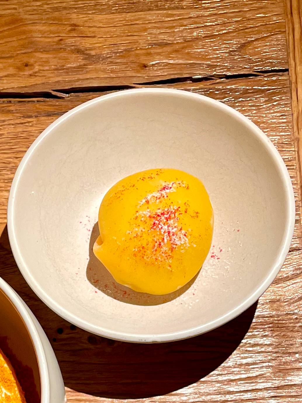 Один из необыкновенно-стильных и аутентичных ресторанов Москвы с брутальным и талантливым шефом. С не менее талантливым и гастрономическим меню. На первом этаже располагается бар, на втором светлые пространства ресторана с диковинным дизайном. Здесь я попробовала вагаси моти впервые зимой. Выбрала вкус манго-маракуйя: нежно, аппетитно, изысканно и сытно. Моти имел глянцевый аппетитный желтый цвет с легкой красной посыпкой.