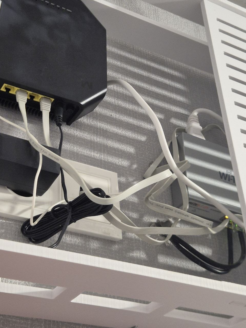 Теоретически они предлагали вариант договориться с УК, поставить точку питания 220 вольт в коммутационном шкафу в подъезде, там поставить шлюз с оптики на витую пару, но это все было почти нереальным. Я согласился на заведение в квартиру еще одного кабеля и начал ждать мастера, а изначально проложенная витая пара так и болтается в подъезде.