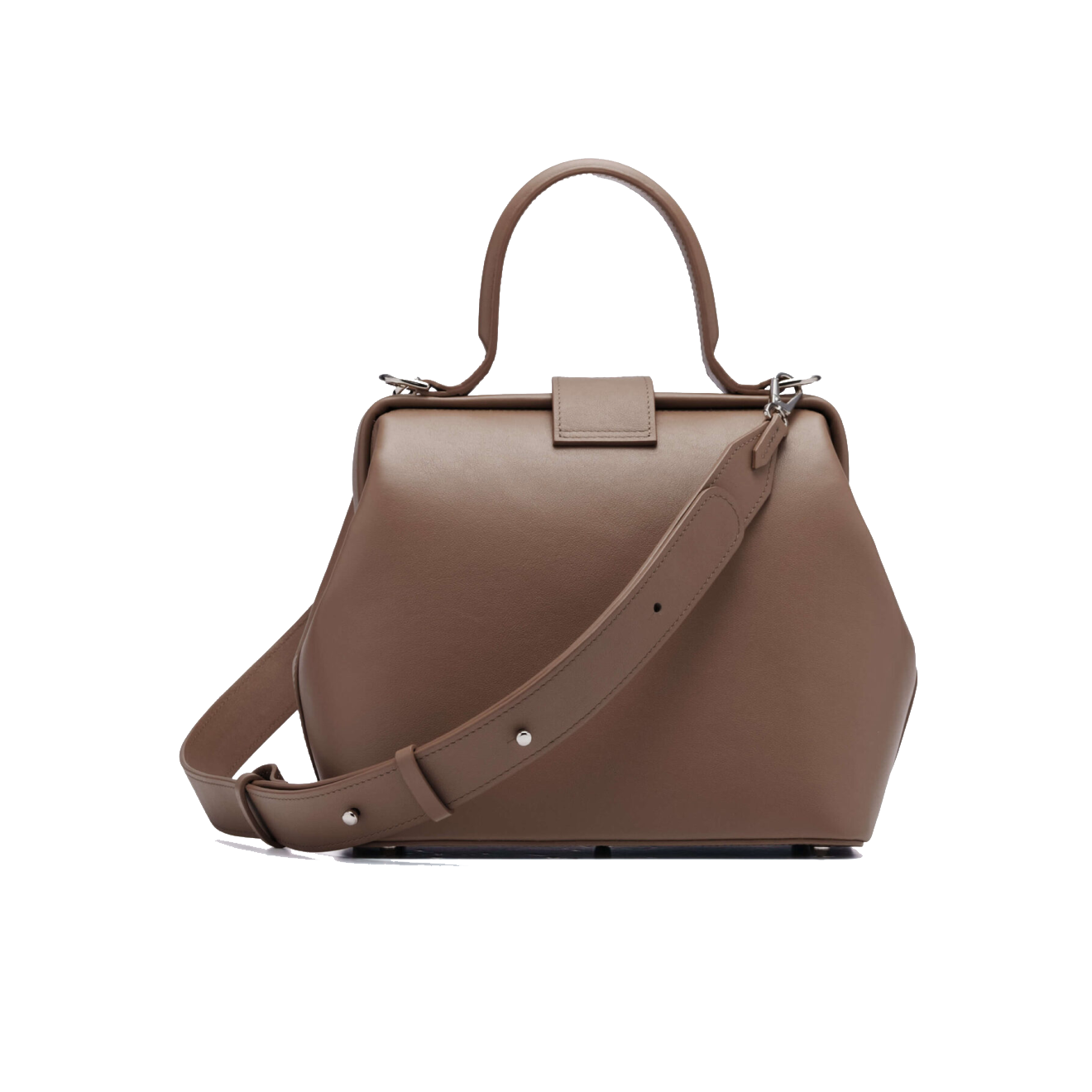 В весенне-летней коллекции 2025 года Coach показал внушительные саквояжи с фермуарами, которые модели носили в руках как клатчи. Годом позже похожие сумки выпустили Bottega Veneta и Alberta Ferretti.