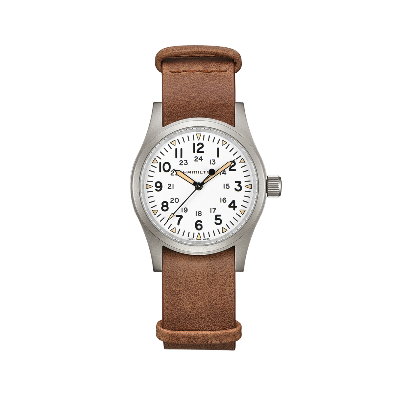 Выполненные в милитари-стиле 1960-х, Khaki Field скрывают механизм с системой ручного завода и запасом хода 80 часов. Матовый стальной корпус и съемный ремешок из грубо обработанной кожи помогают создать эффект спецагента на миссии где-нибудь в дикой природе