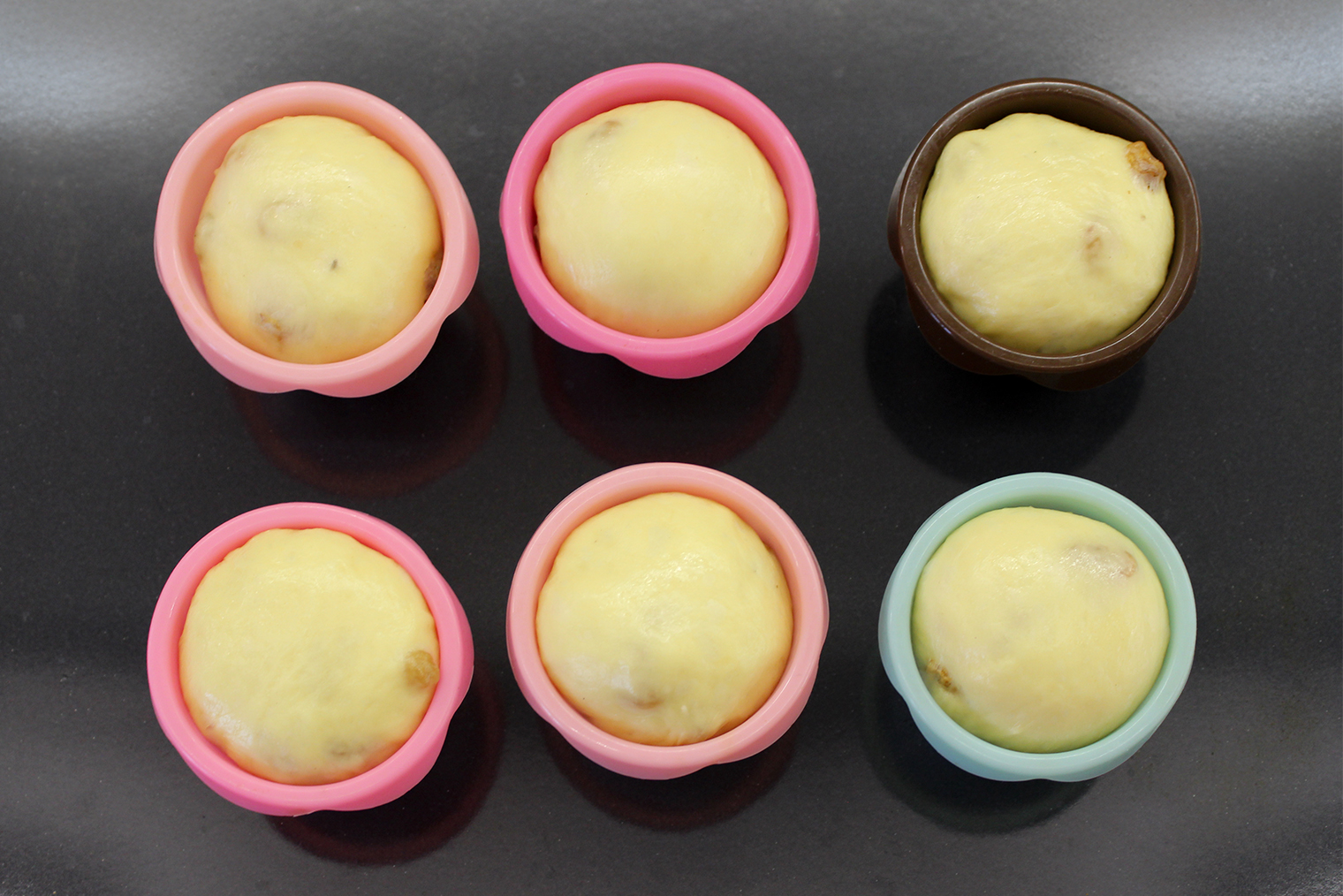 Шаг 9. Заготовки выложите в формы швом вниз, накройте полотенцем или пленкой и оставьте на 20—30 минут.