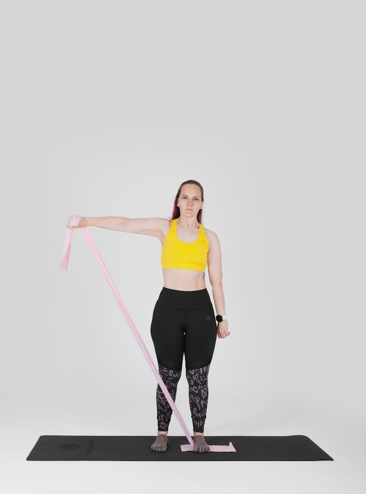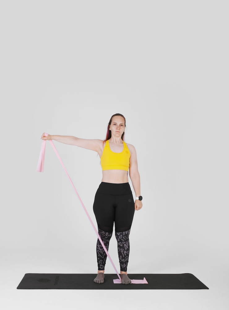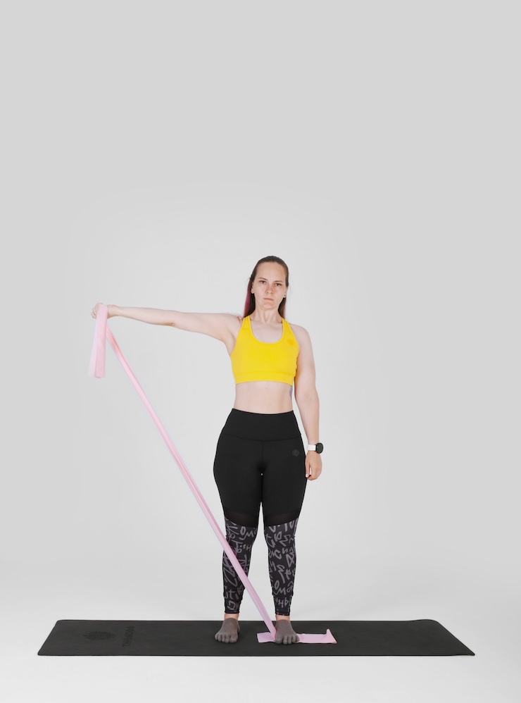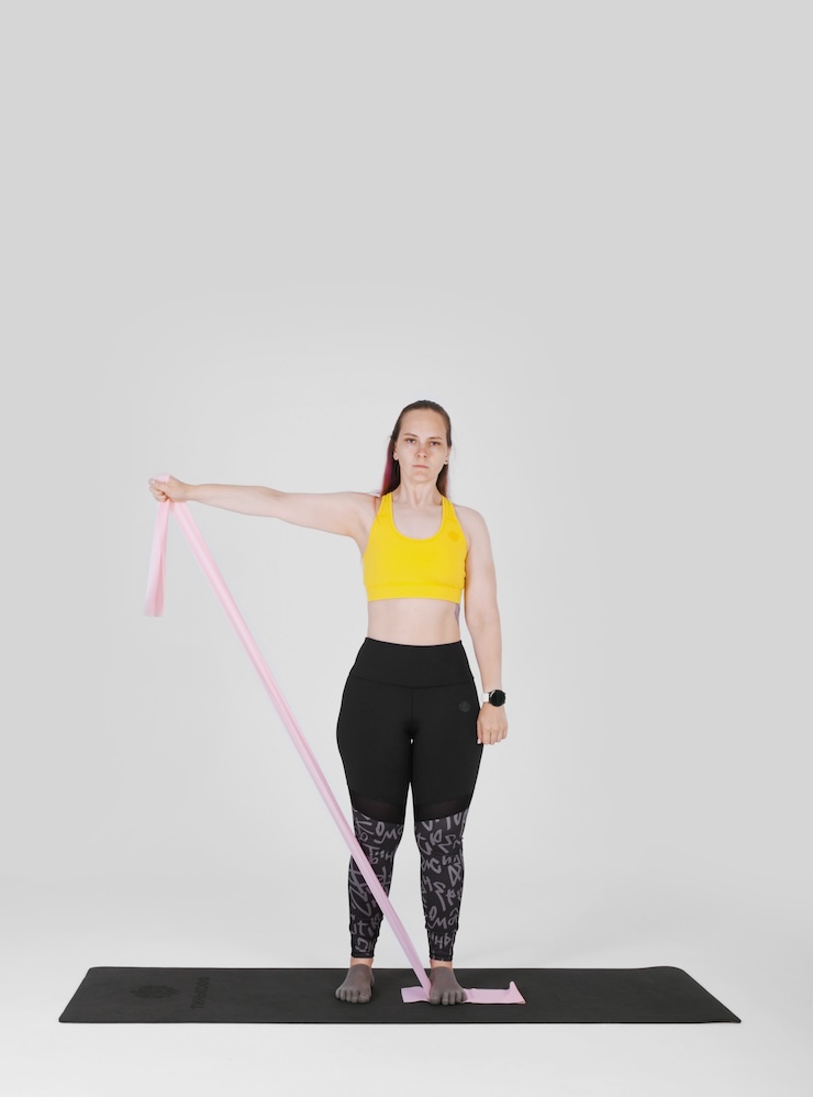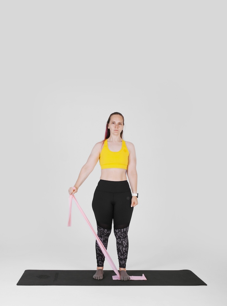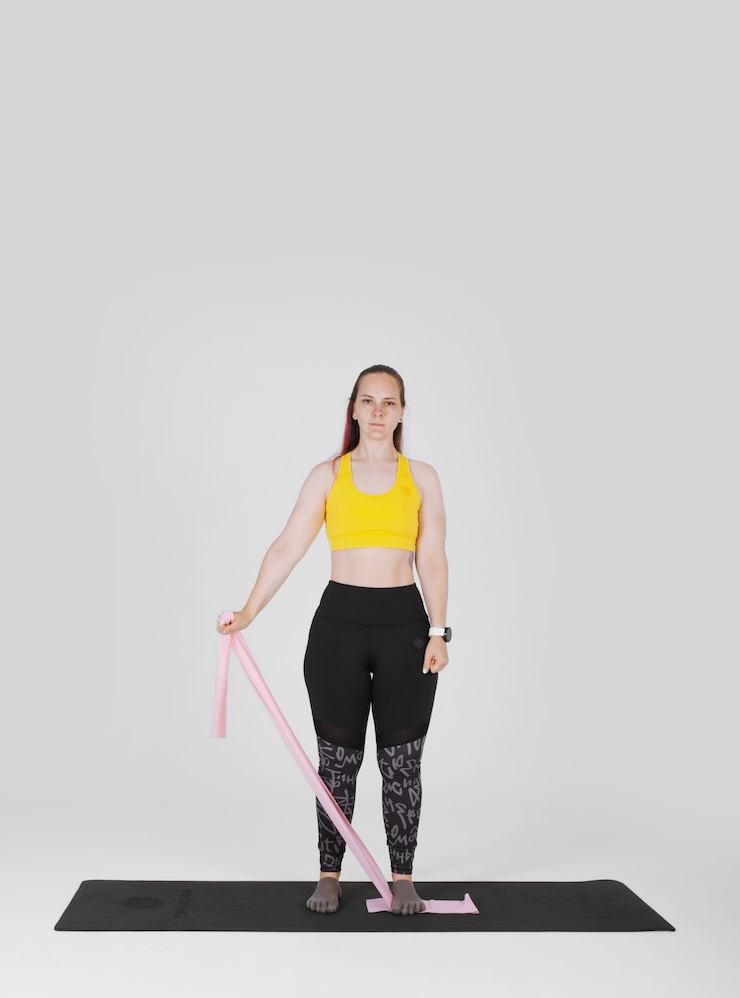 Для выполнения упражнения понадобится эластичная фитнес-лента.