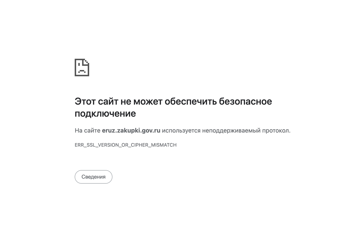 Настроить браузер для работы в ЕИС. Если пропустить этот шаг, на одном из дальнейших этапов увидите сообщение, что сайт не может обеспечить безопасное подключение.