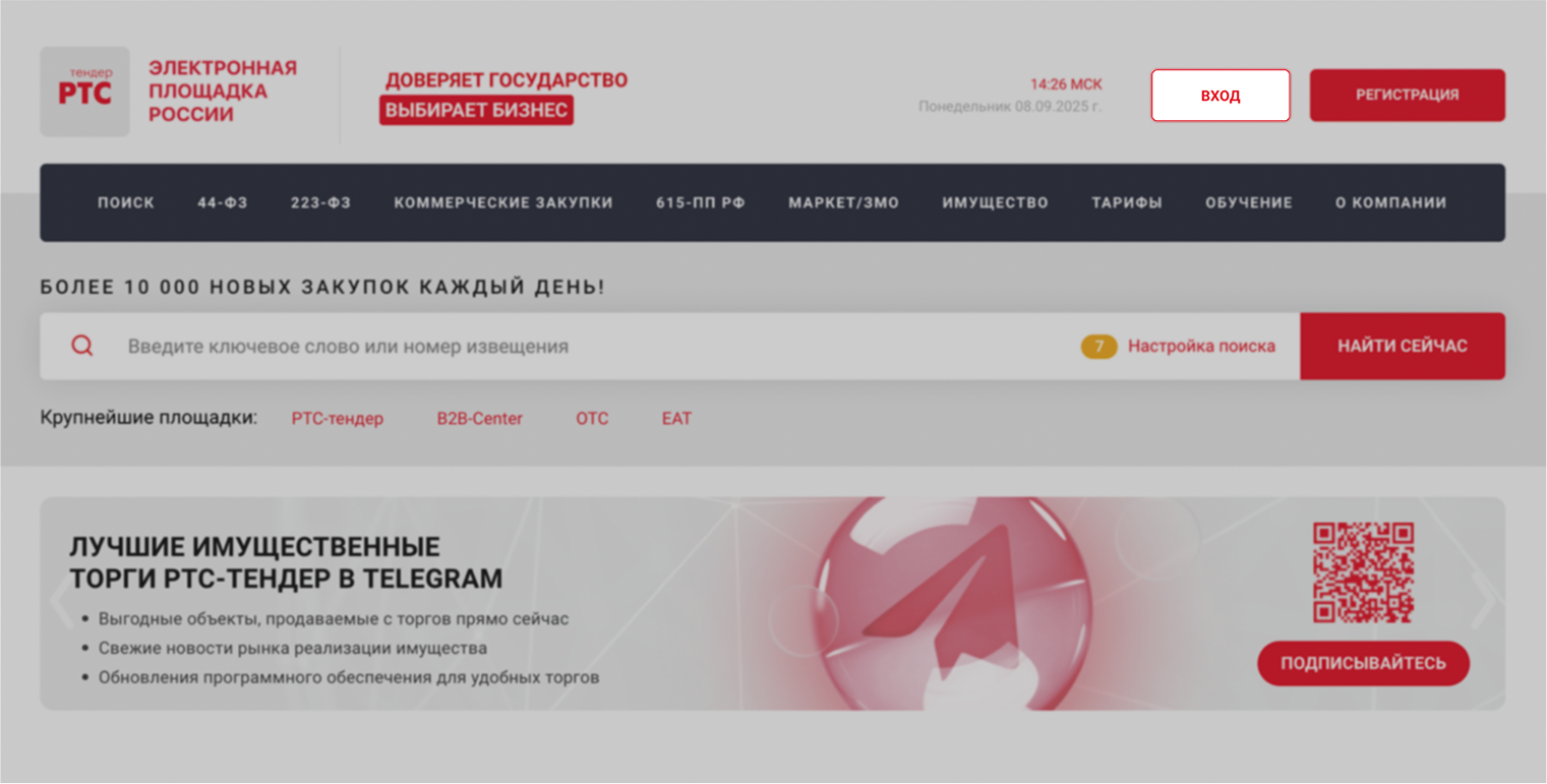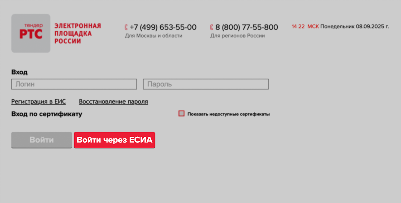 После регистрации в ЕИС можно войти на «РТС-тендер».