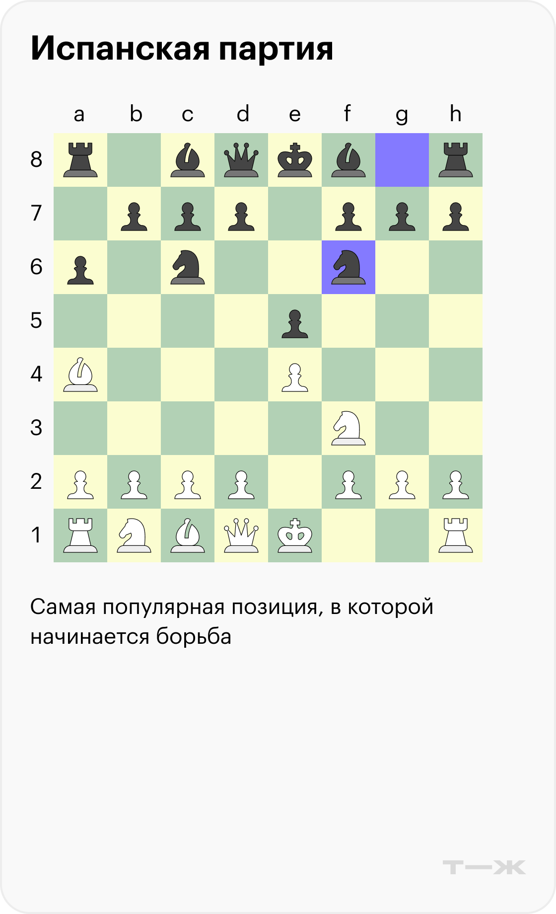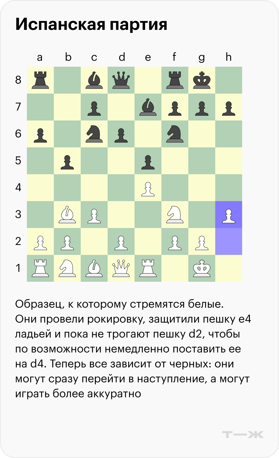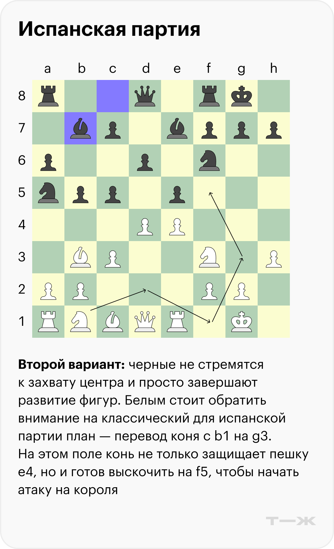 В ней гораздо меньше ловушек, чем в других популярных дебютах, поэтому она подходит для изучения основ позиционной игры. Но эту стратегию выбирают не только любители — она неоднократно встречалась в матчах первенства мира. Расскажу, как играть испанскую партию и какие у нее бывают варианты, а также дам несколько советов.
