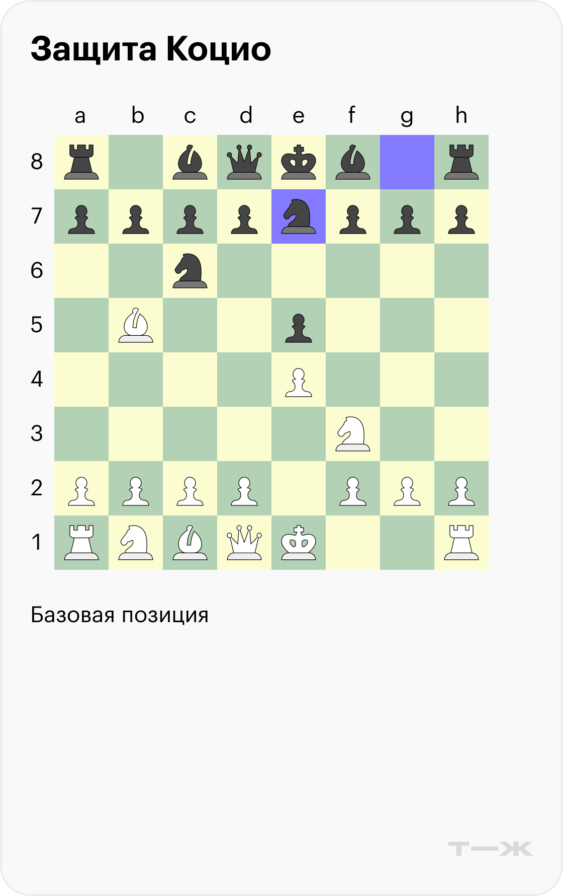 Защита Коцио (3…Nge7). Ход конем на e7 популярен как у любителей, так и у профессионалов: первые обычно делают его, чтобы защитить коня на с6, а вторые планируют затем сдвинуть пешку с g7, вывести туда слона и получить нетипичный вариант продолжения.