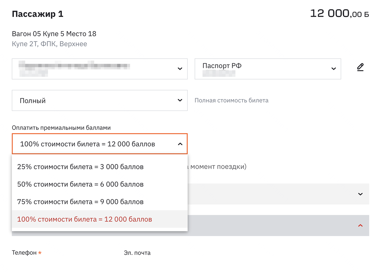- за 12 000 баллов — в купе;