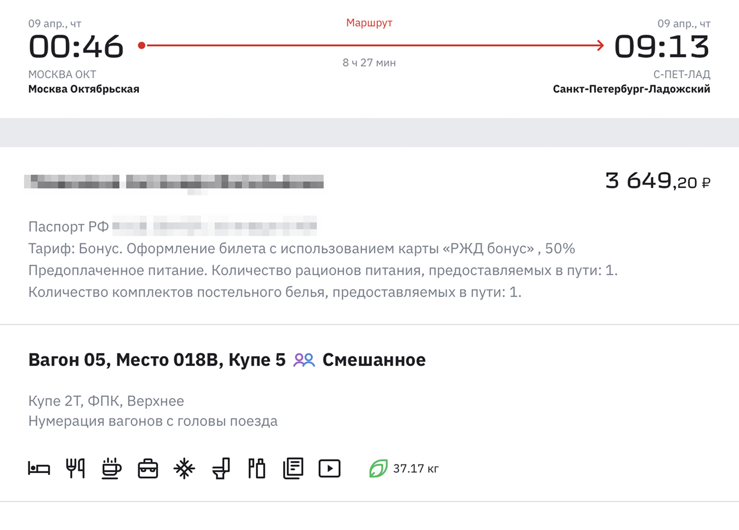 За баллы нельзя получить билет в плацкартный вагон или обычный билет в вагон с местами для сидения. Баллы можно потратить только у перевозчиков ДОСС и ФПК. В стоимость билета не входят дополнительные услуги вроде постельного белья или питания, за них придется доплатить . Предупреждение об этом будет видно при оформлении бонусного билета. Отказаться от услуг, которые включены в билет по умолчанию, не получится.