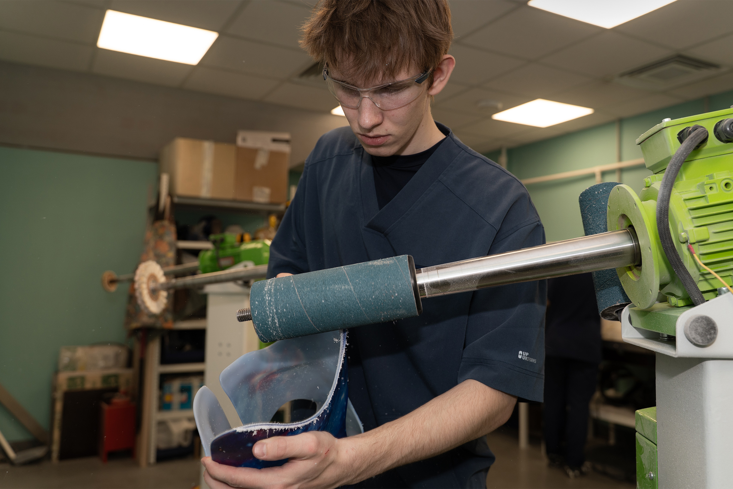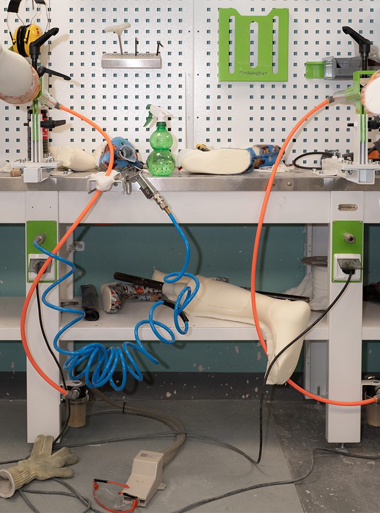 Потом техники дорабатывают корсет — подгоняют его под пациента. Для этого используют шарошечный станок . Он стоит 700 000 ₽. Еще в работе используют вакуумный насос за 250 000 ₽ и другое оборудование.