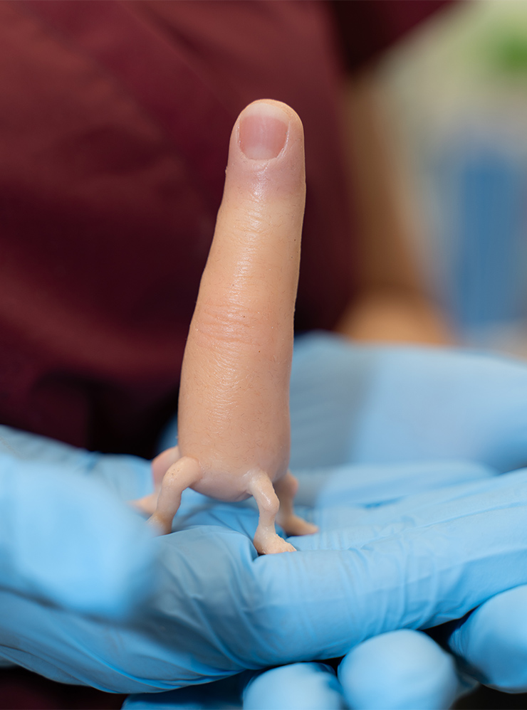 Врач снимает слепок конечности, делает замеры для изготовления протеза, отправляет их на производство. С пациентом работают психолог и реабилитолог — помогают подготовиться к установке протеза.
