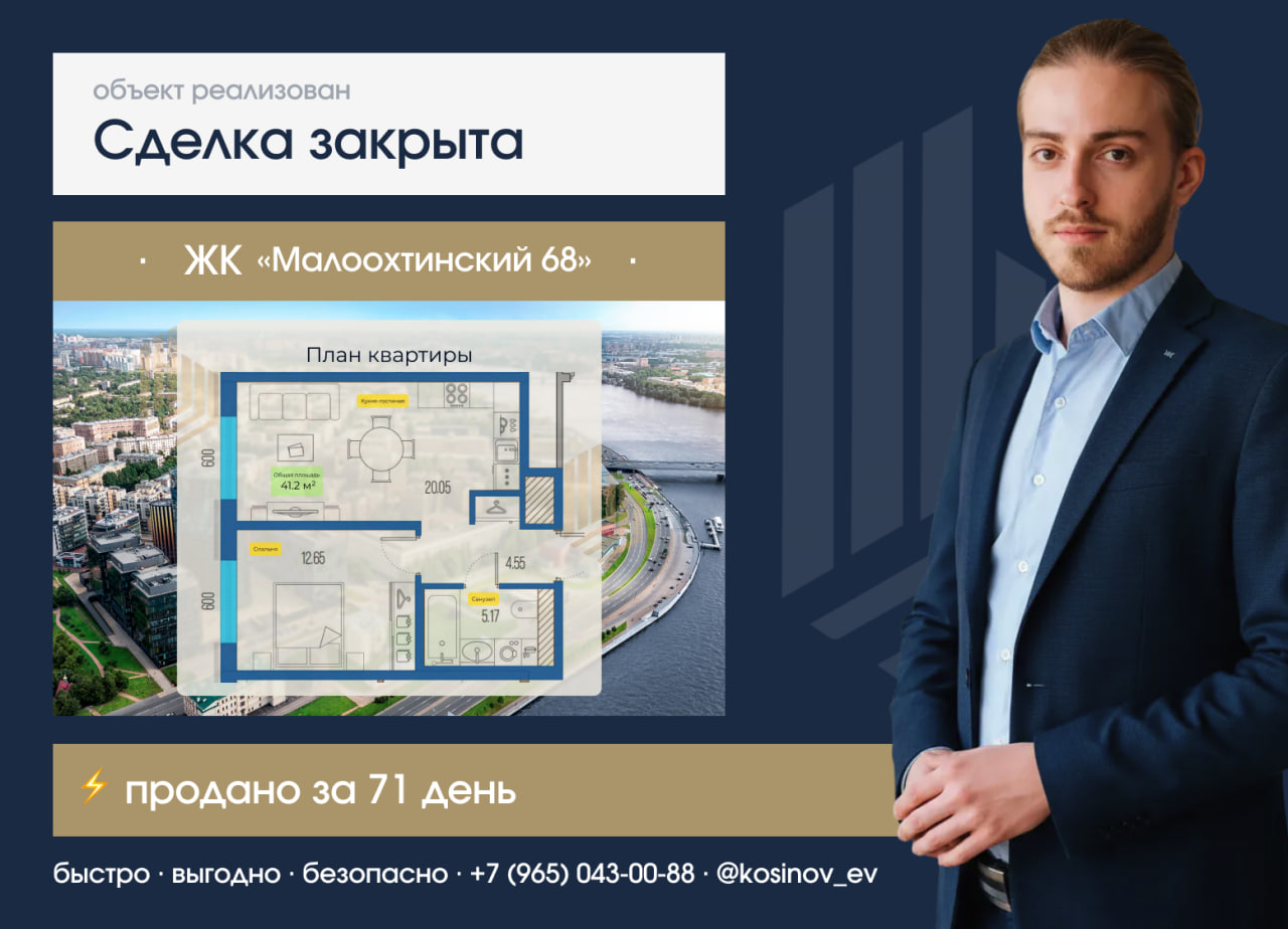 🌐 Продавец прилетает в Санкт-Петербург в день сделки, процесс полностью готов к проведению.