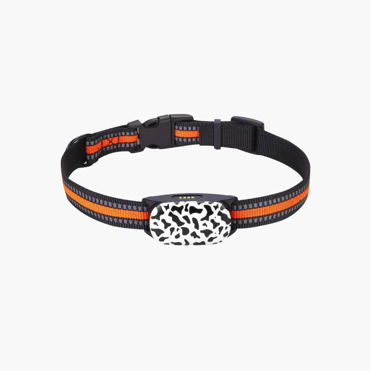 Крепится к ошейнику с помощью силиконового чехла.