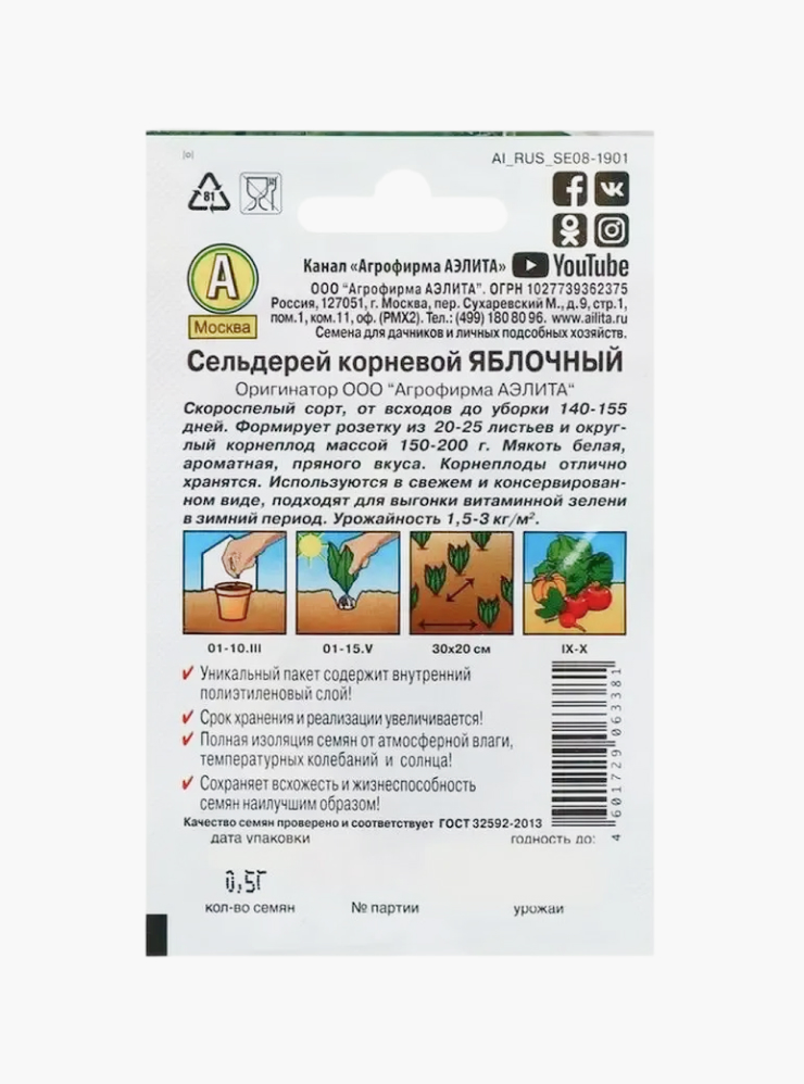 На пакетике корневого сельдерея сорта «яблочный» производитель указал срок от всходов до уборки урожая 140—155 дней. Значит, от 15 октября мне нужно отсчитать в обратную сторону указанный срок и добавить 7—10 дней на появление всходов. Получается, что посеять этот сорт корневого сельдерея нужно с конца апреля до начала мая. Но, по личному опыту, могу сказать, что этого недостаточно для наращивания большого клубня. За такой срок у меня нарастал корень размером с куриное яйцо.