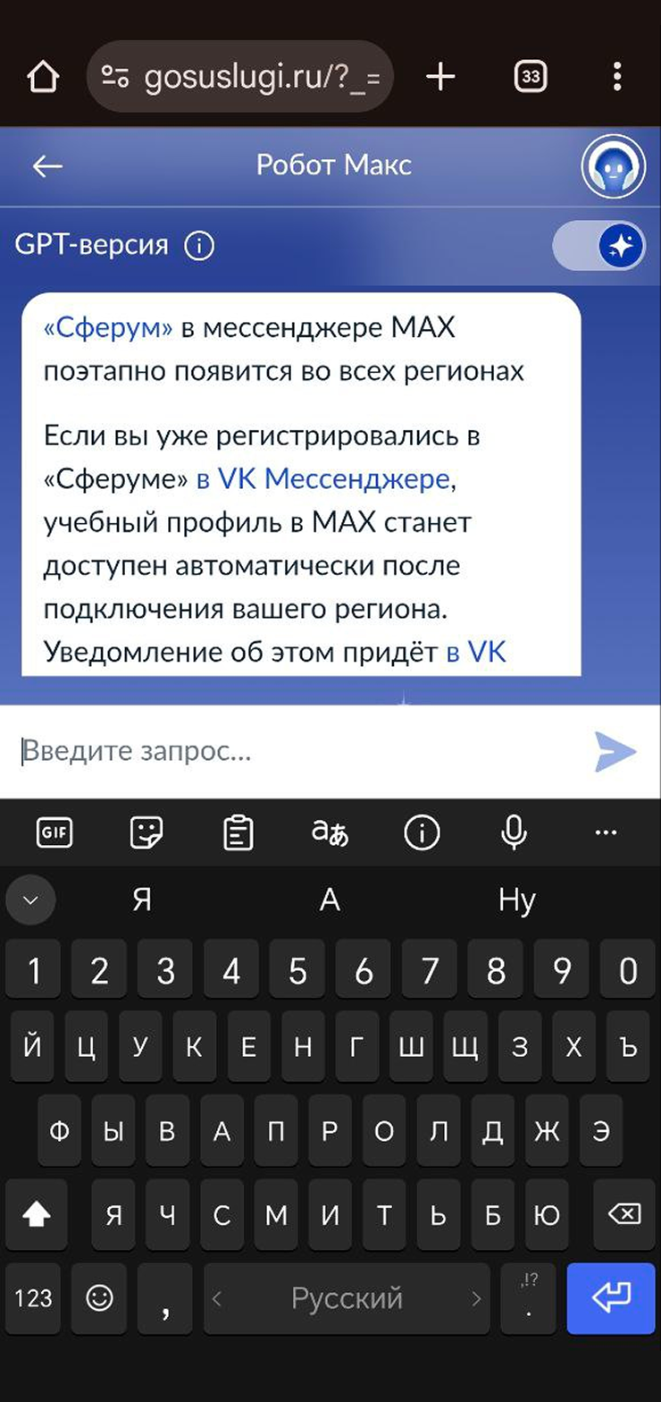 Раньше в «Сферум» входили через «VK Мессенджер» и «ВКонтакте». Это и сейчас можно сделать, но теперь там старая версия платформы. Актуальная — в мессенджере Max. А на госуслугах дают только справочную информацию.