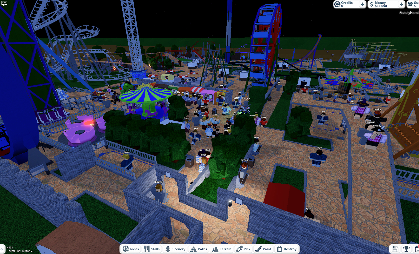 У вас есть участок земли, на котором нужно построить парк развлечений. Вы обустраиваете его на свой вкус: можете сделать высокие американские горки и смотровую башню, поставить карусель и колесо обозрения, лавки с мороженым и напитками. Чем лучше ваш парк, тем популярнее он будет у посетителей и тем больше прибыли станет приносить