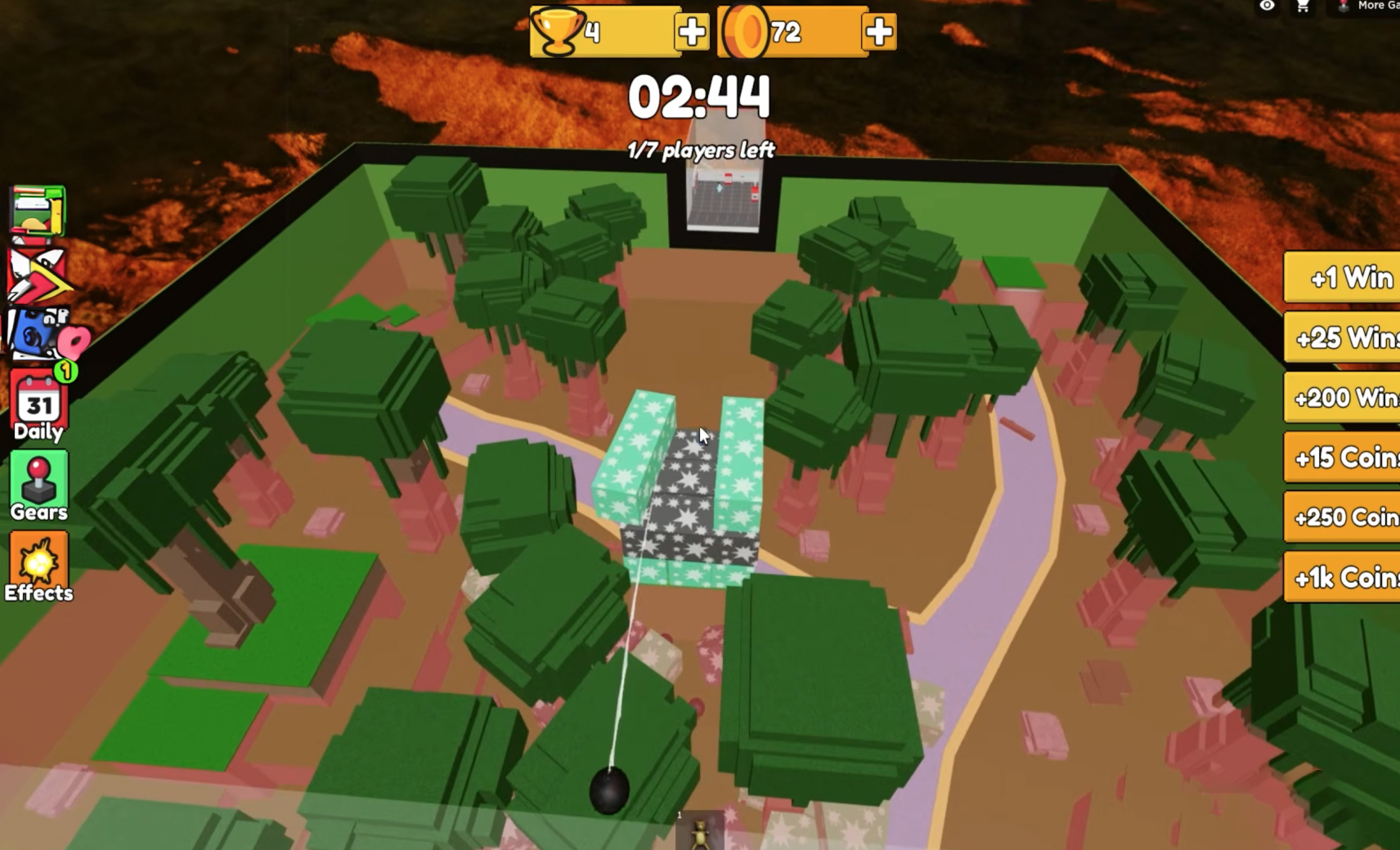 Вы оказываетесь на острове, где доступны 142 мини-игры. За победу в одной получите 10 монет, которые можете потратить в магазине на снаряжение и питомцев. Игры самые разнообразные: есть и гонка, и соревнование на выживание с падающими метеоритами, и морские сражения на кораблях, и лазертаг в космосе. Мини-игры отличаются по уровню сложности, но их легко освоить и маленьким детям