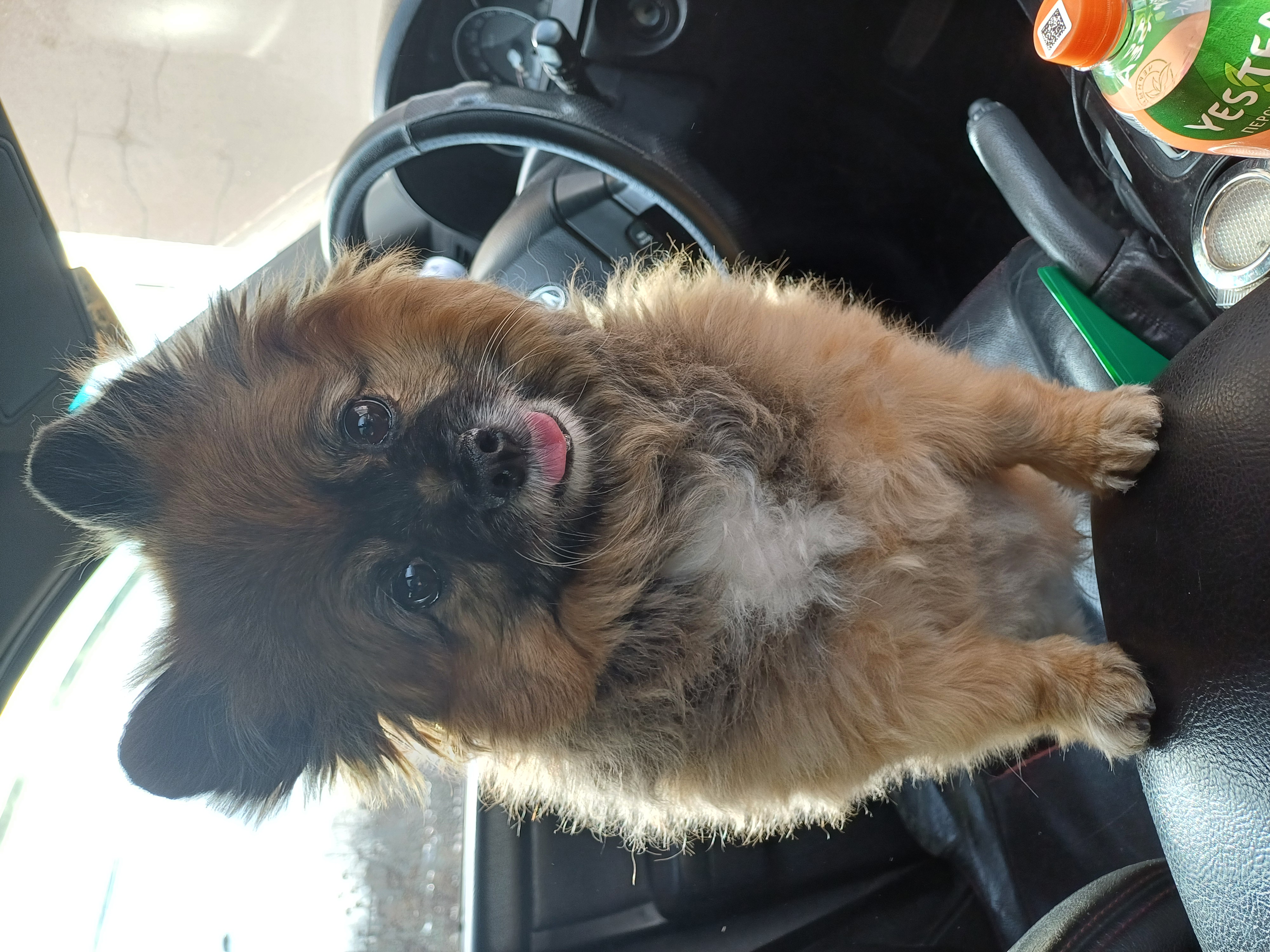Фото питомца: шпиц Тоби очень любит кататься на машине