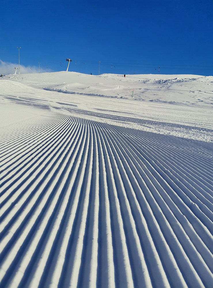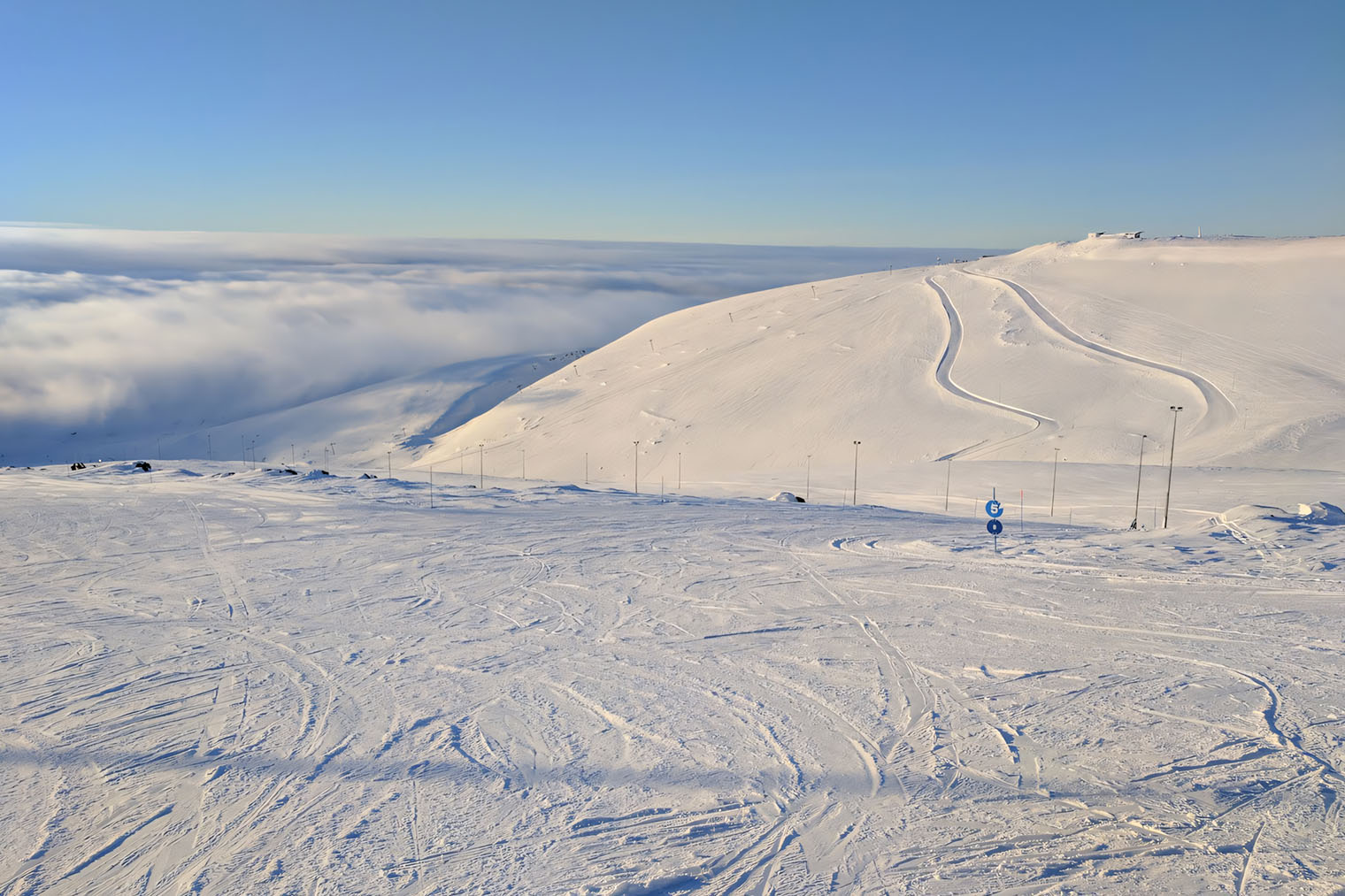 Большая часть трасс — красные и синие. 16 из них имеют искусственное освещение, что позволяет с комфортом кататься даже в полярную ночь. Красная трасса 23 содержит технически сложный участок: многие райдеры среднего уровня объезжают его по снежной целине. У меня тоже иногда перехватывает дыхание, когда я оказываюсь у этого спуска.